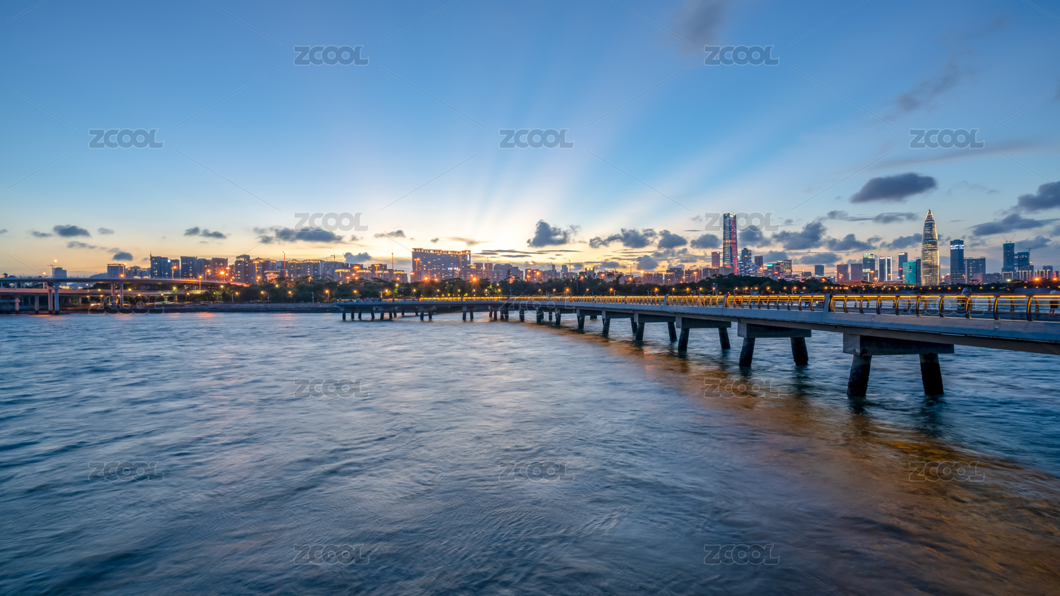 中国广东省深圳市南山区深圳湾公园城市夜景