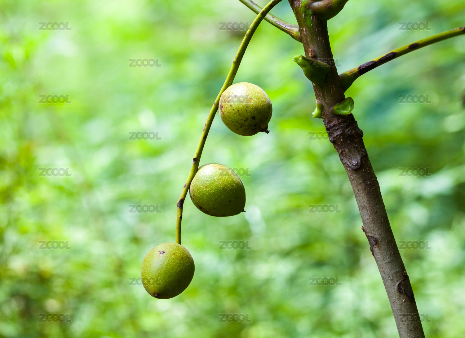 生在在树上的野山核桃果实特写
