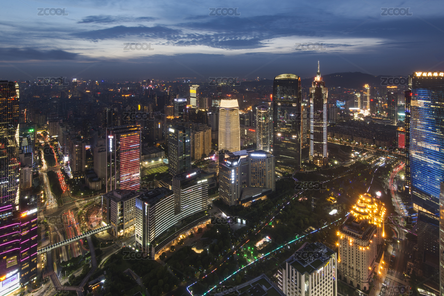 夜景,航拍,鸟瞰,高视角,写字楼,办公楼,背景,玻璃,城市,大厦