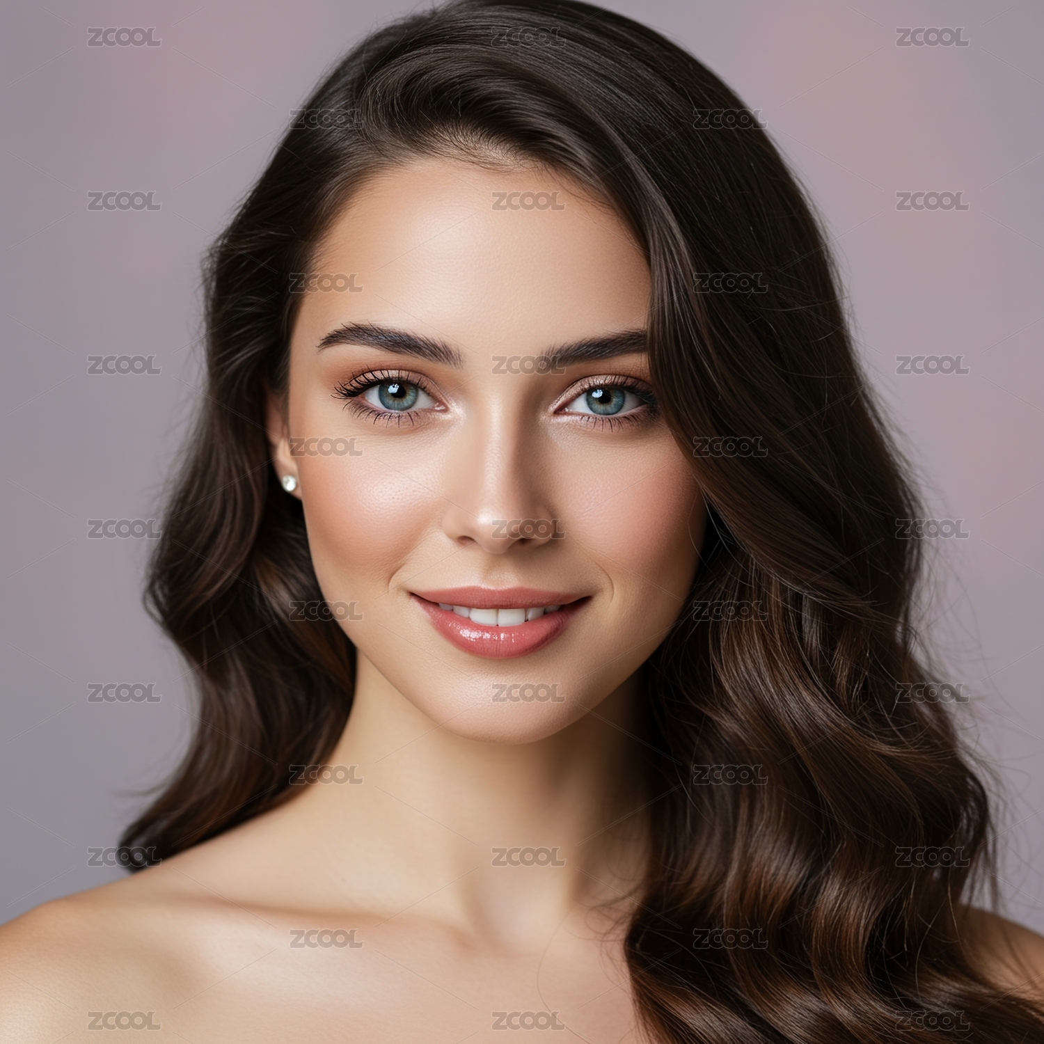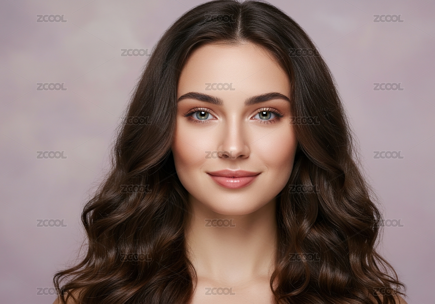 女性,肖像,特写,波浪长发,深色头发,清澈眼神,微笑,自然美,皮肤光滑,细腻