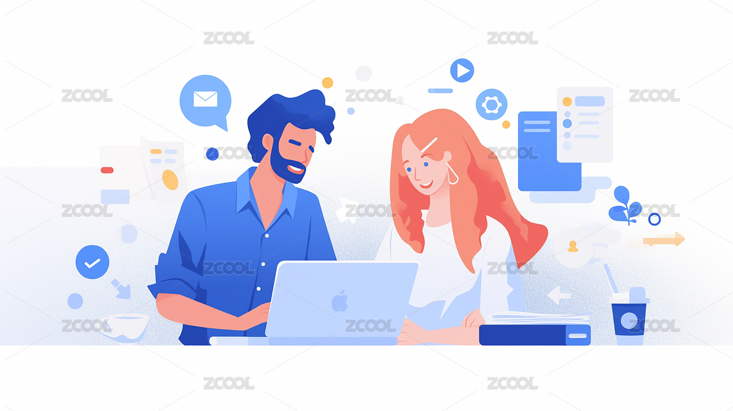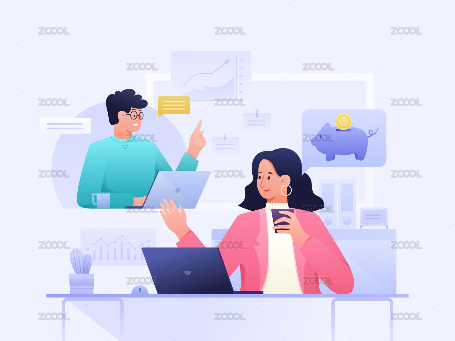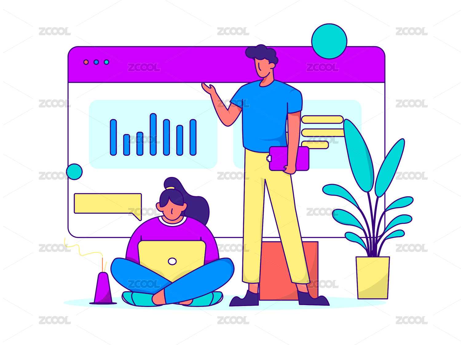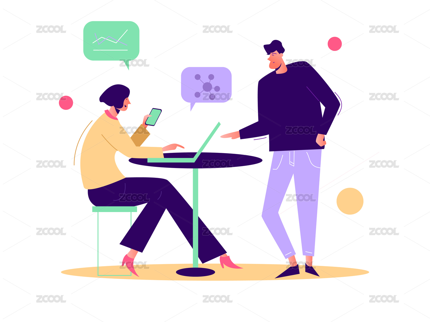 工作的男女2, 矢量扁平人物场景创意概念插画