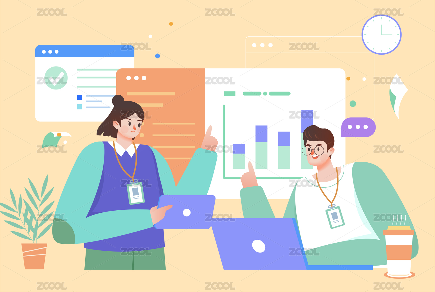 团队,协作,扁平,矢量,插画,卡通,合作,共赢,人物,线上
