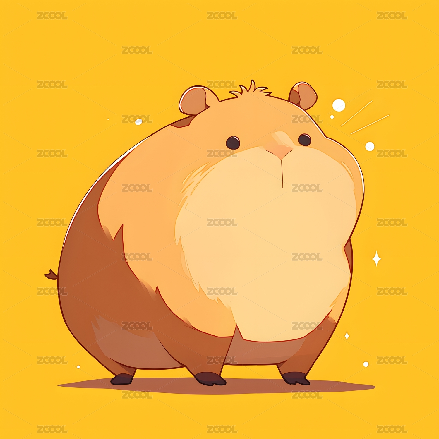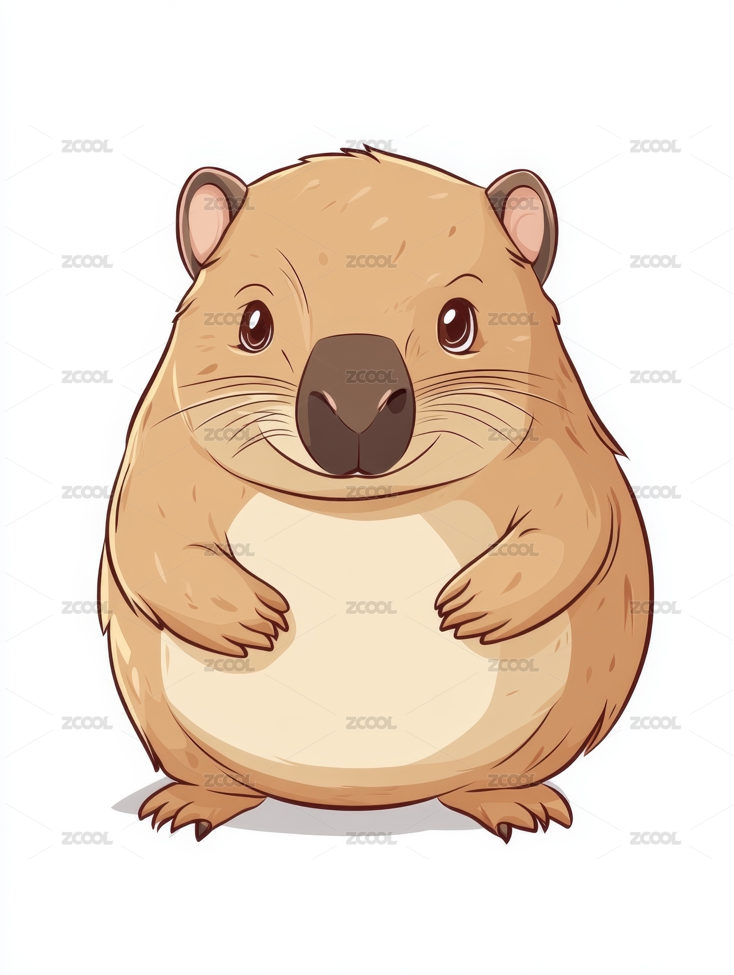 水豚,卡皮巴拉,卡通,可爱,萌宠,动物,插画,胖,圆,毛茸茸