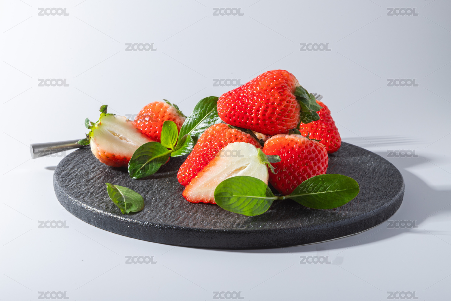 黑色餐盘里有一些草莓