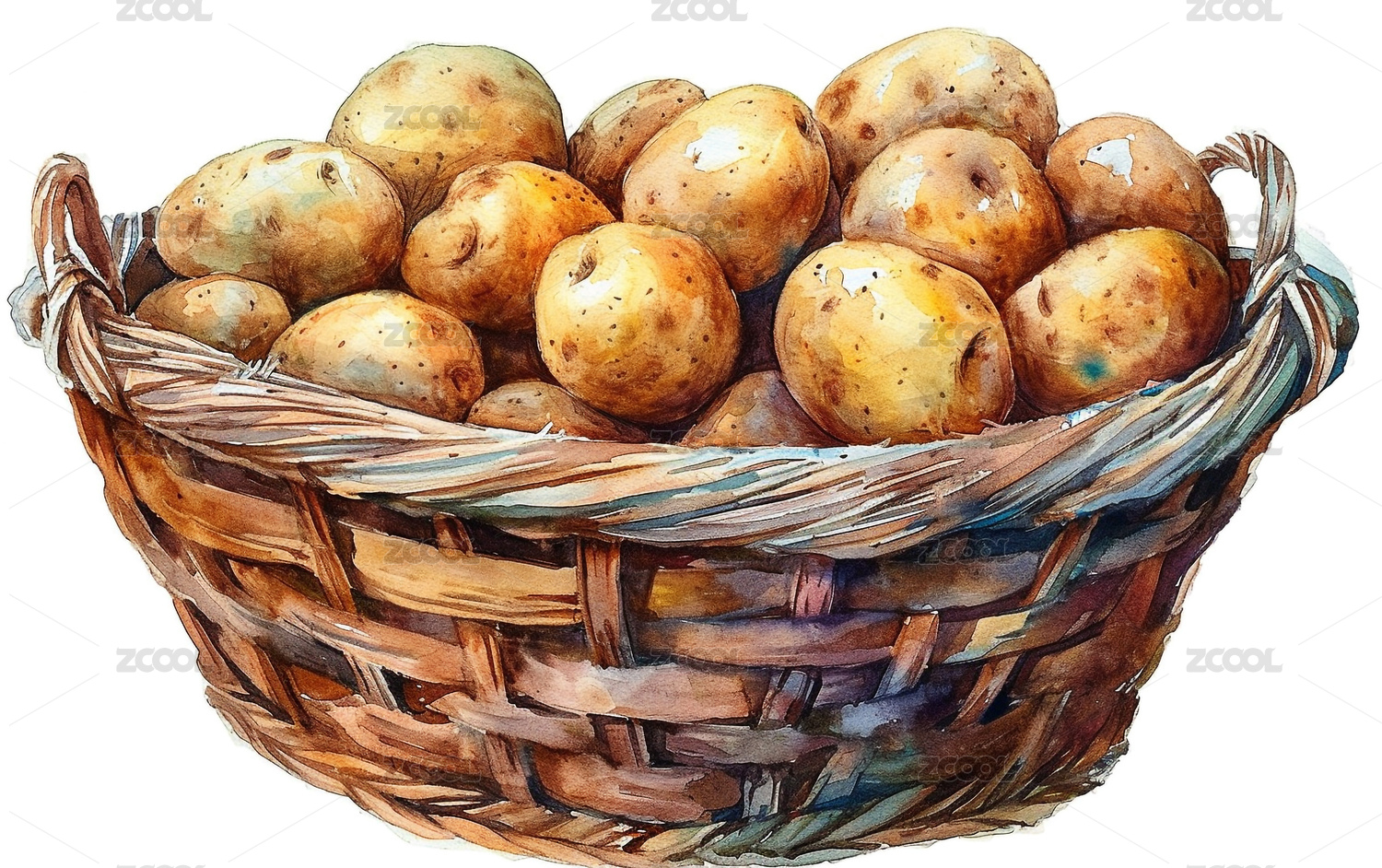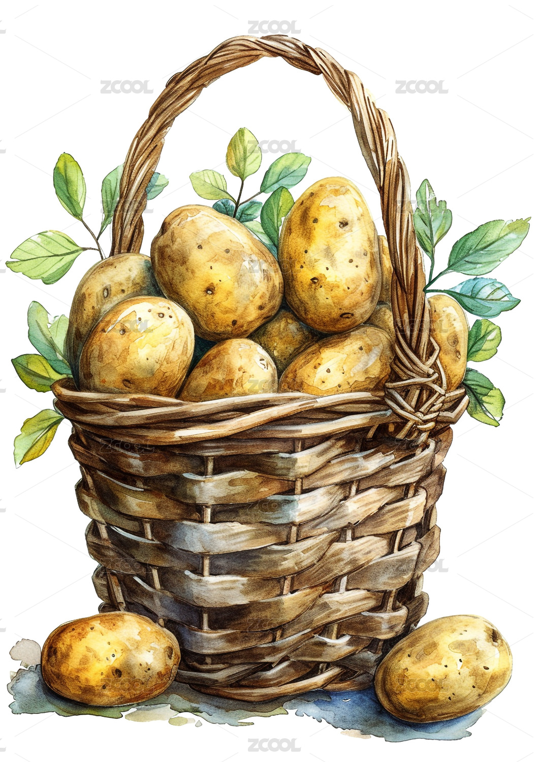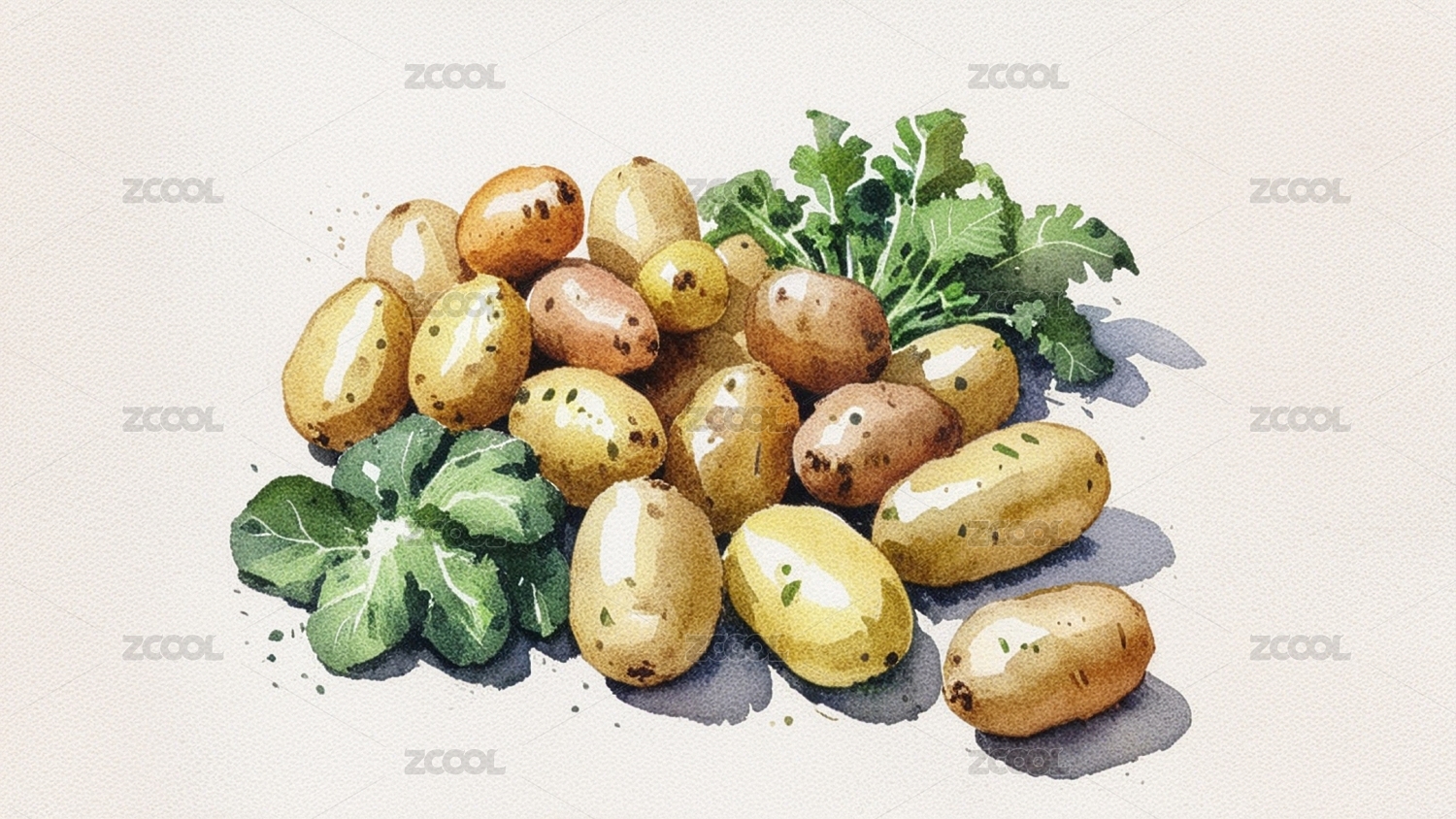 土豆,洋芋,马铃薯,新鲜土豆,插图,插画,水彩画,水彩,绘画,农作物