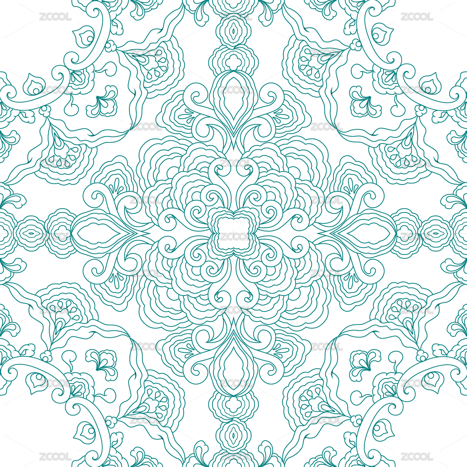 矢量国潮敦煌藻井无缝图案纹样线稿