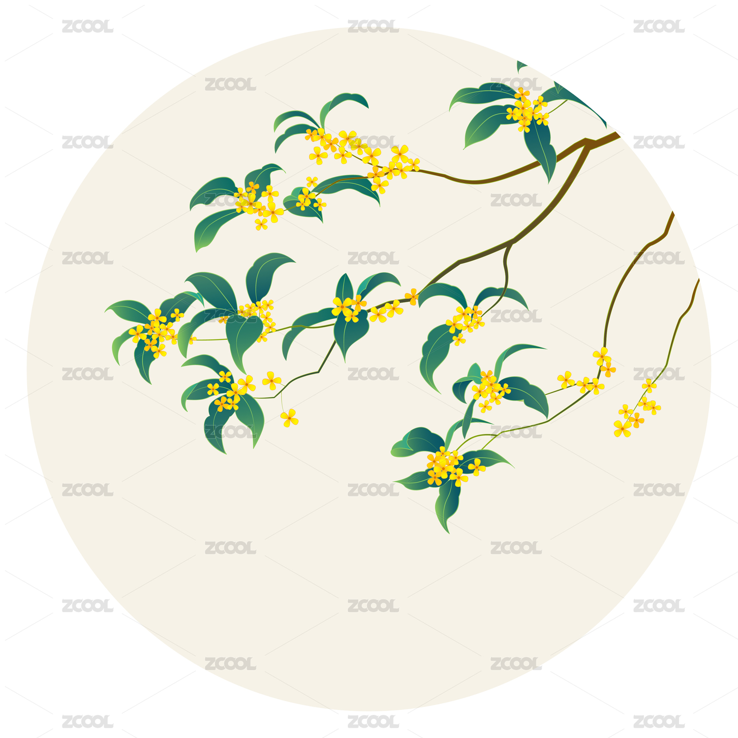 桂花枝插画素材