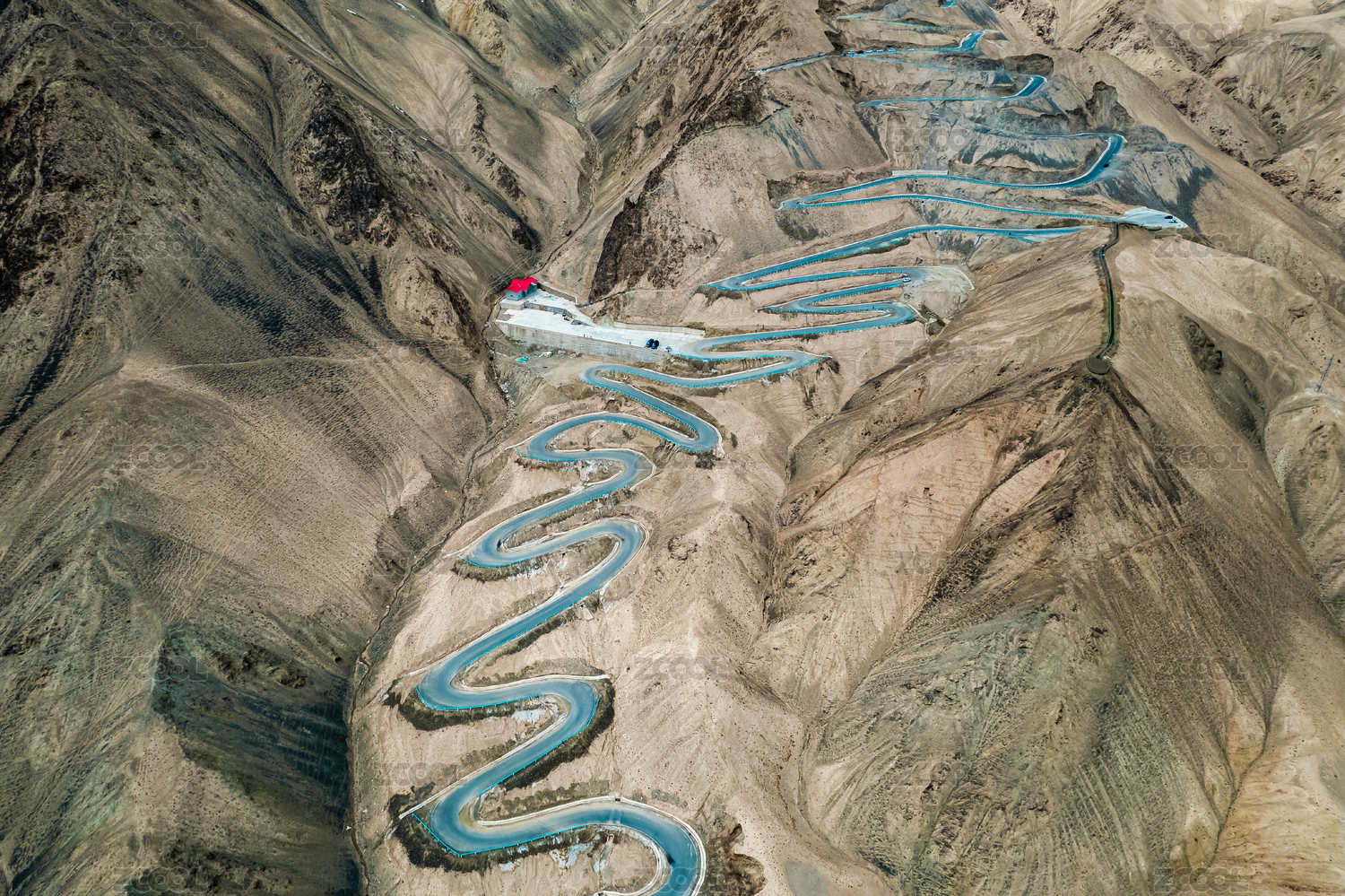 中国新疆盘龙古道十八弯公路航拍