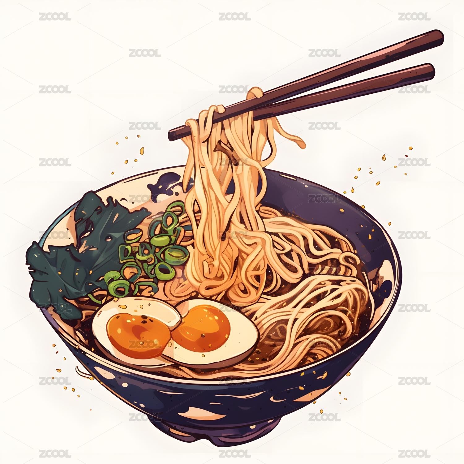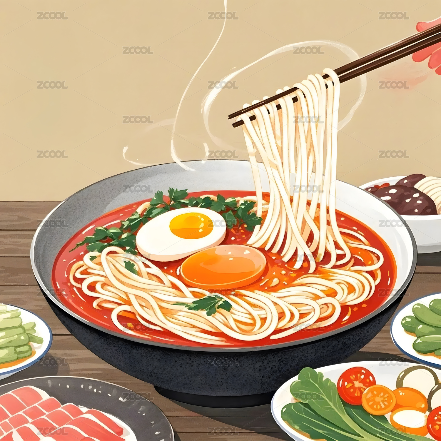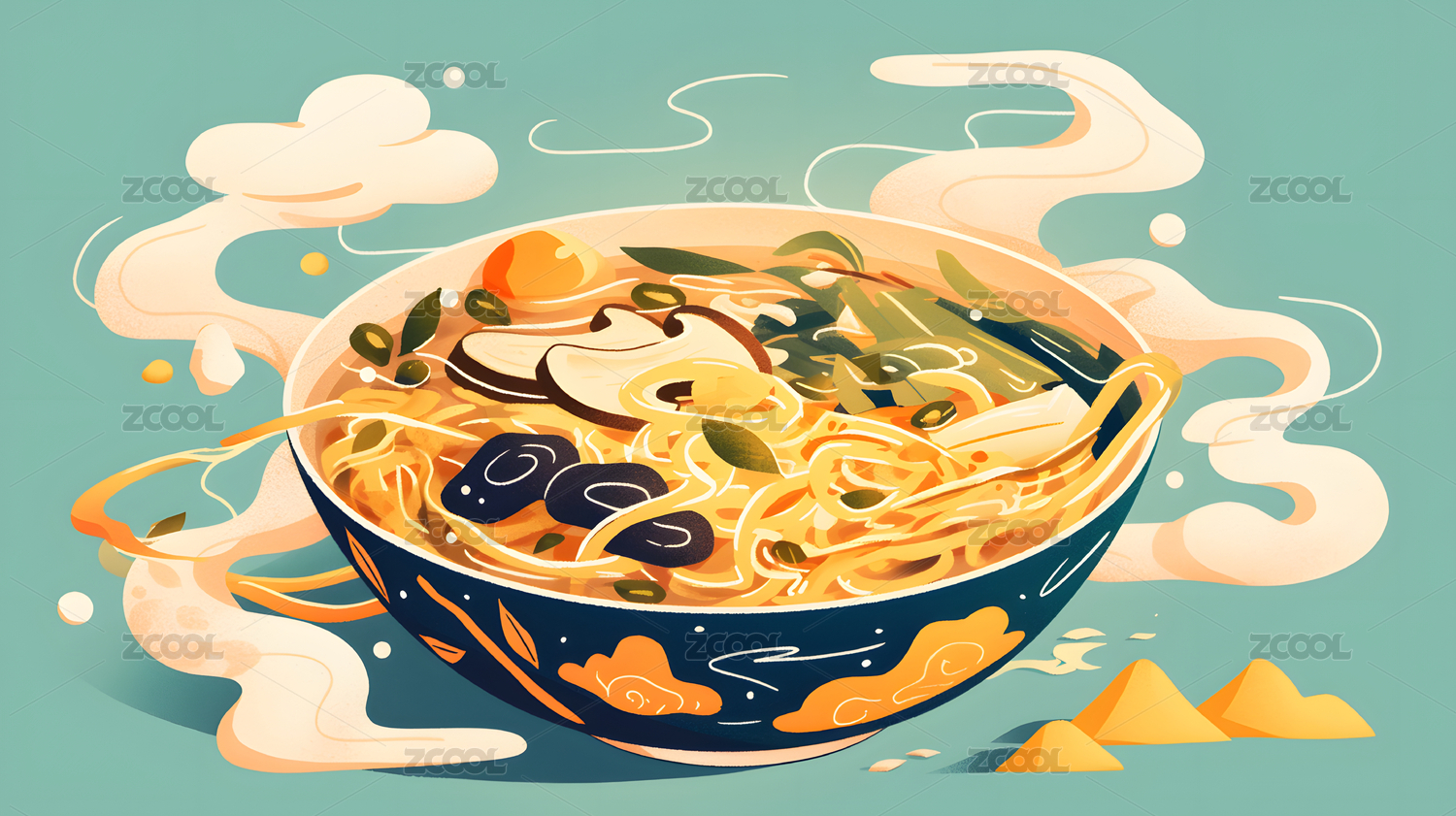 一碗,米线,面条,插画,鸡肉,猪肉,米粉,木耳,鸡蛋,蔬菜