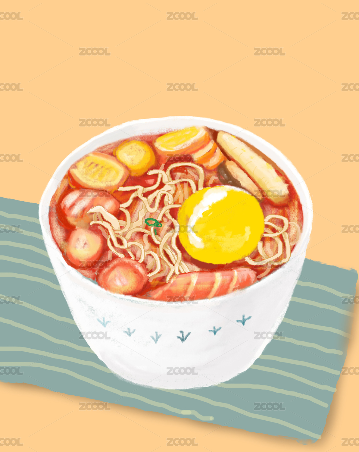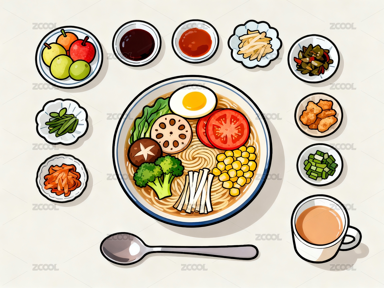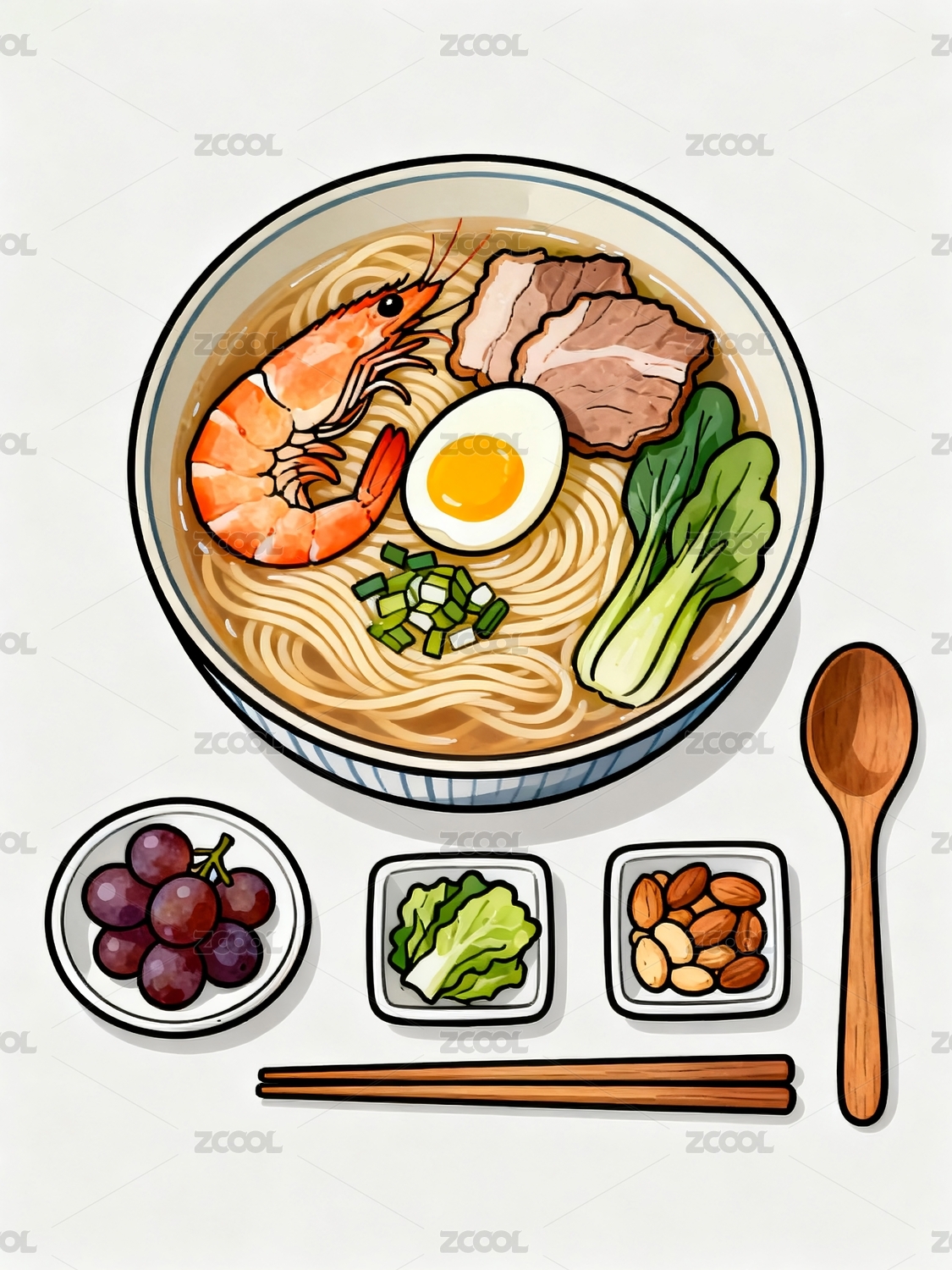 一碗,米线,面条,插画,鸡肉,猪肉,米粉,木耳,鸡蛋,蔬菜