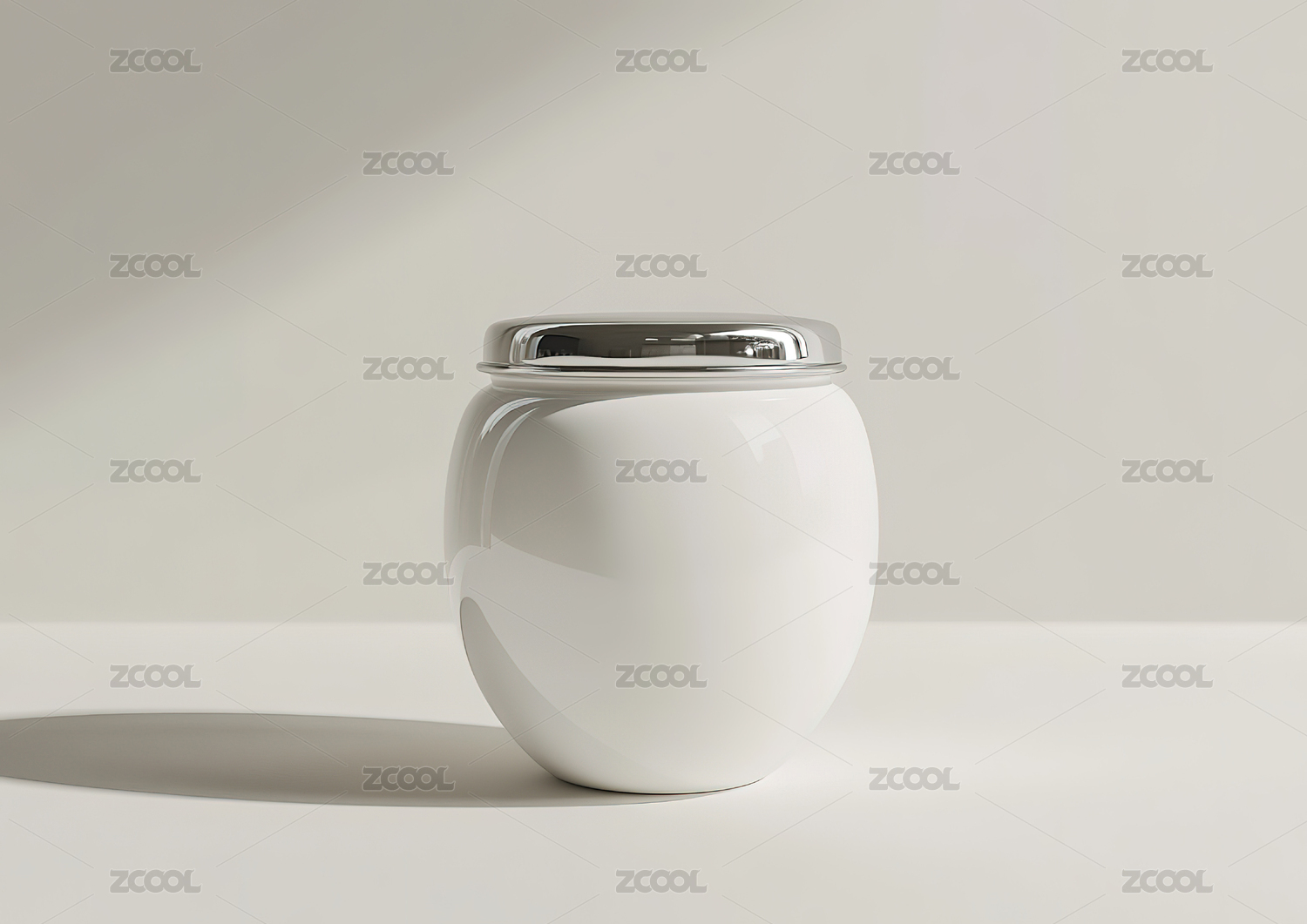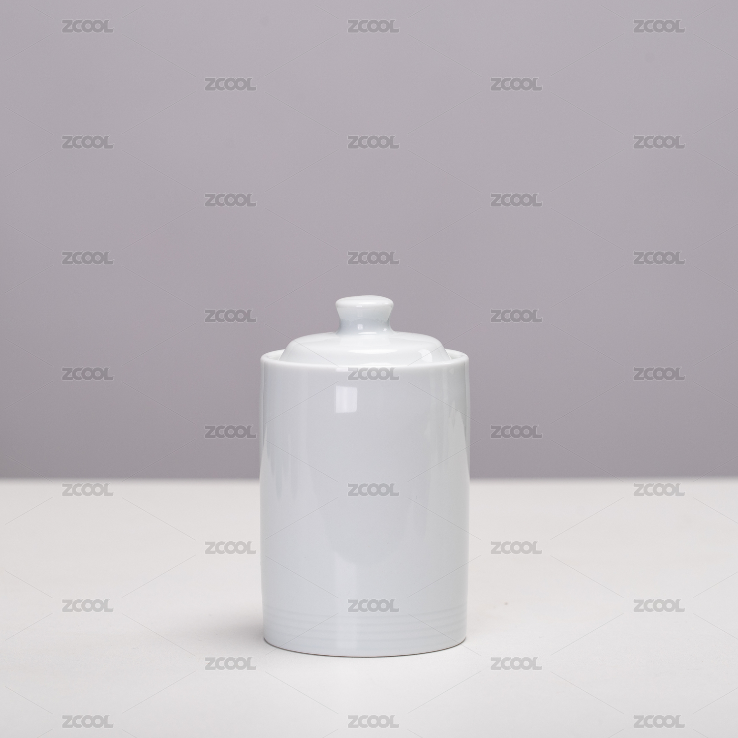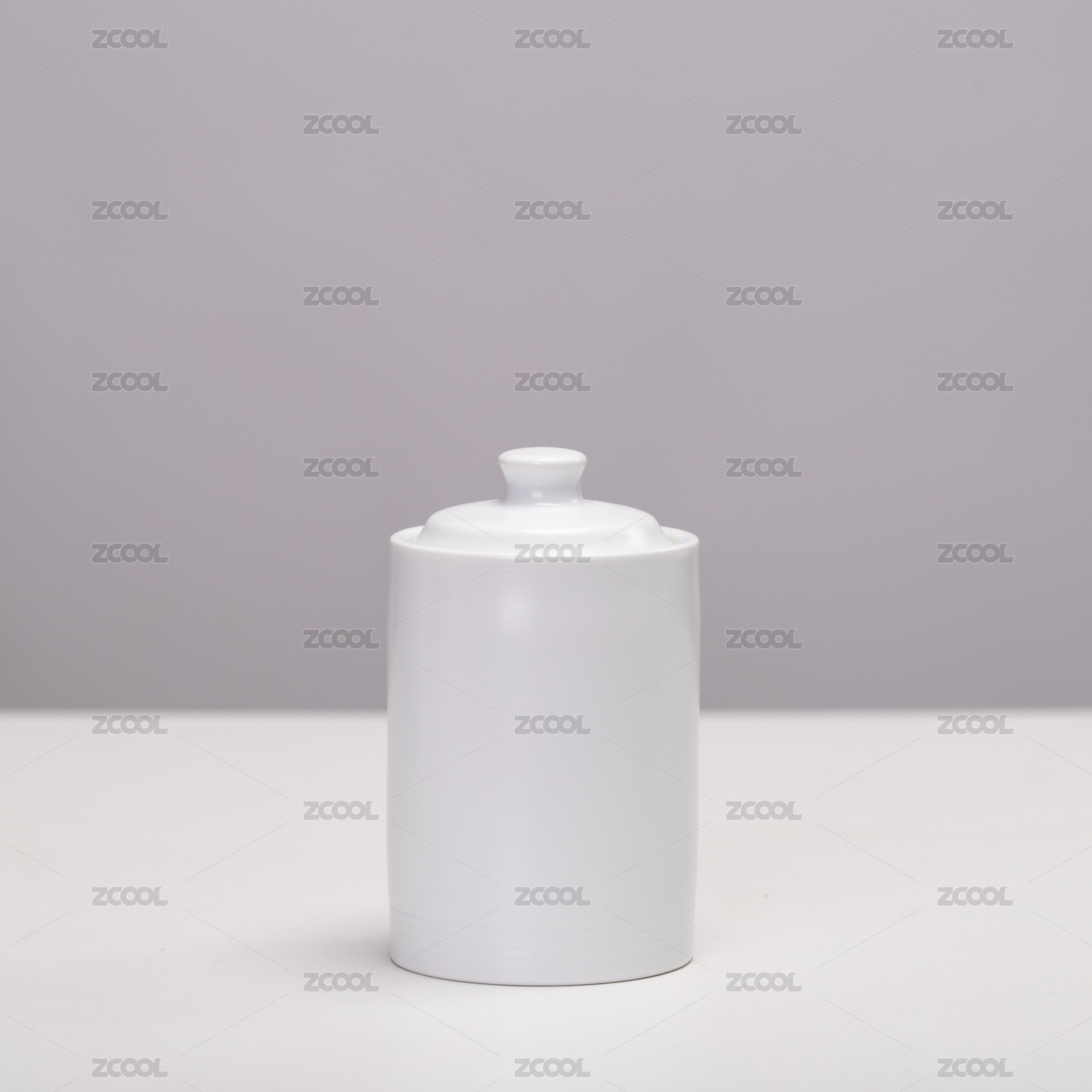 一个白瓷茶仓放在白色桌面上