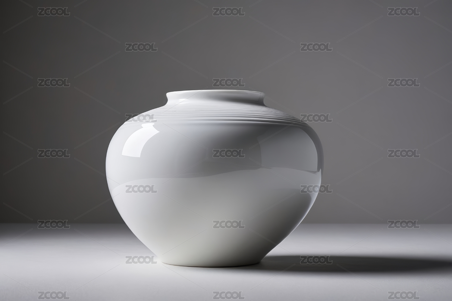 桌子上有一个白色的花瓶背景是灰色的高清图