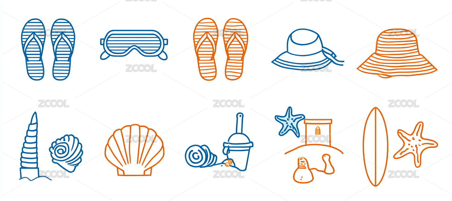 可爱卡通大海沙滩图标夏天旅行海边元素