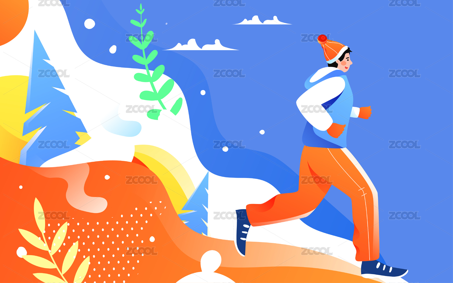 锻炼健康跑步的人物矢量互联网运营手绘插画
