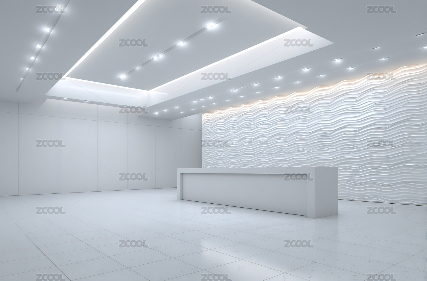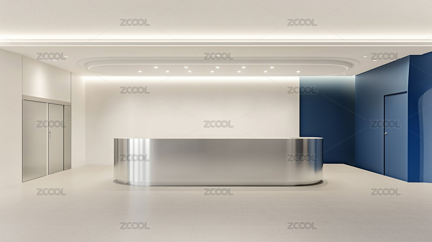 白色,蓝色,简洁,时尚,金属,长方形前台,曲线设计,白色墙壁,墙壁,背景墙