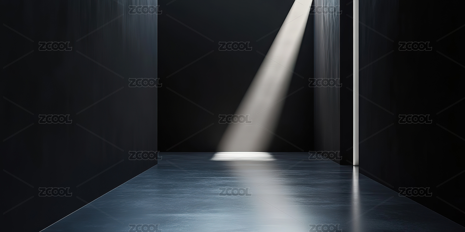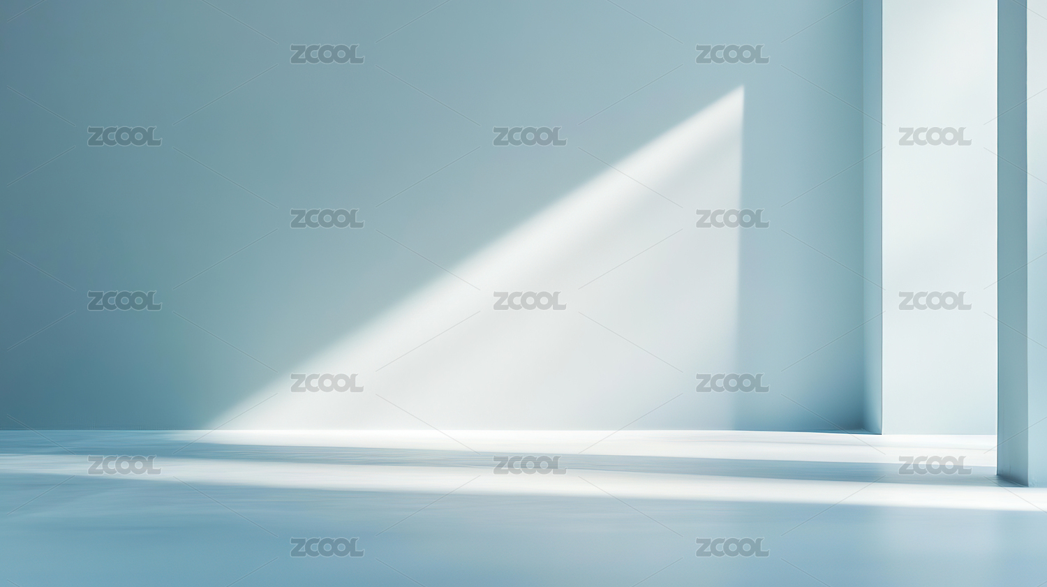 简约风格,浅蓝色,白色主色调,光滑质感,墙面,地板,半开门,白色门框,墙壁,明暗交错