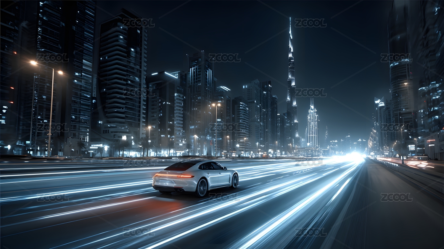 夜幕下疾驰跑车穿梭都市 速度与光影交织