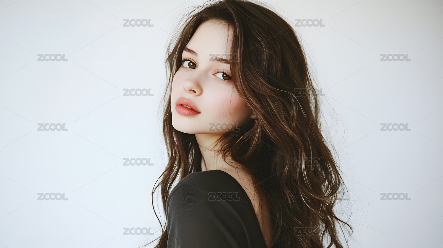 欧美年轻长发女人肖像