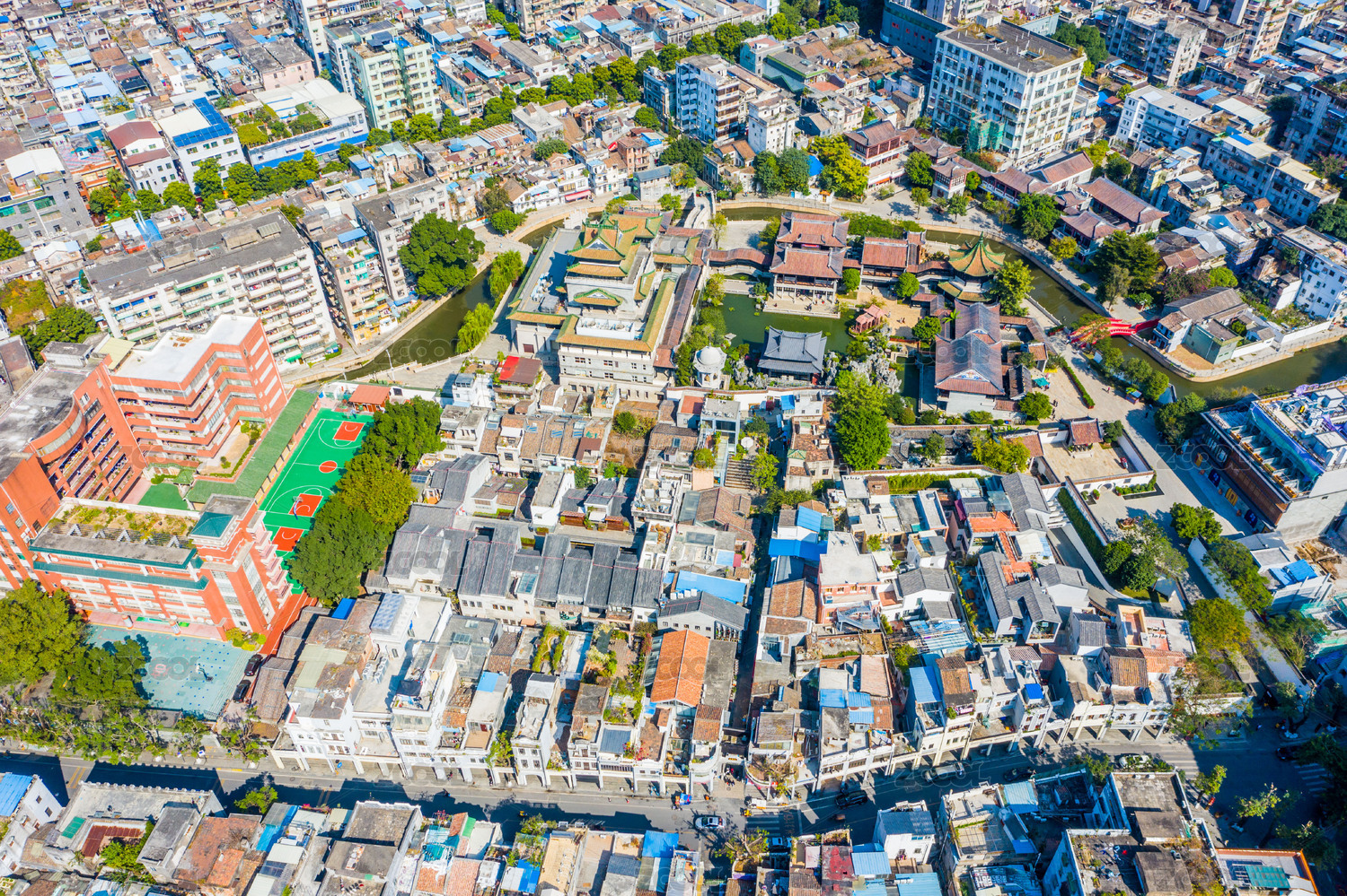 中国四川省自贡市富顺县西湖公园河文庙航拍