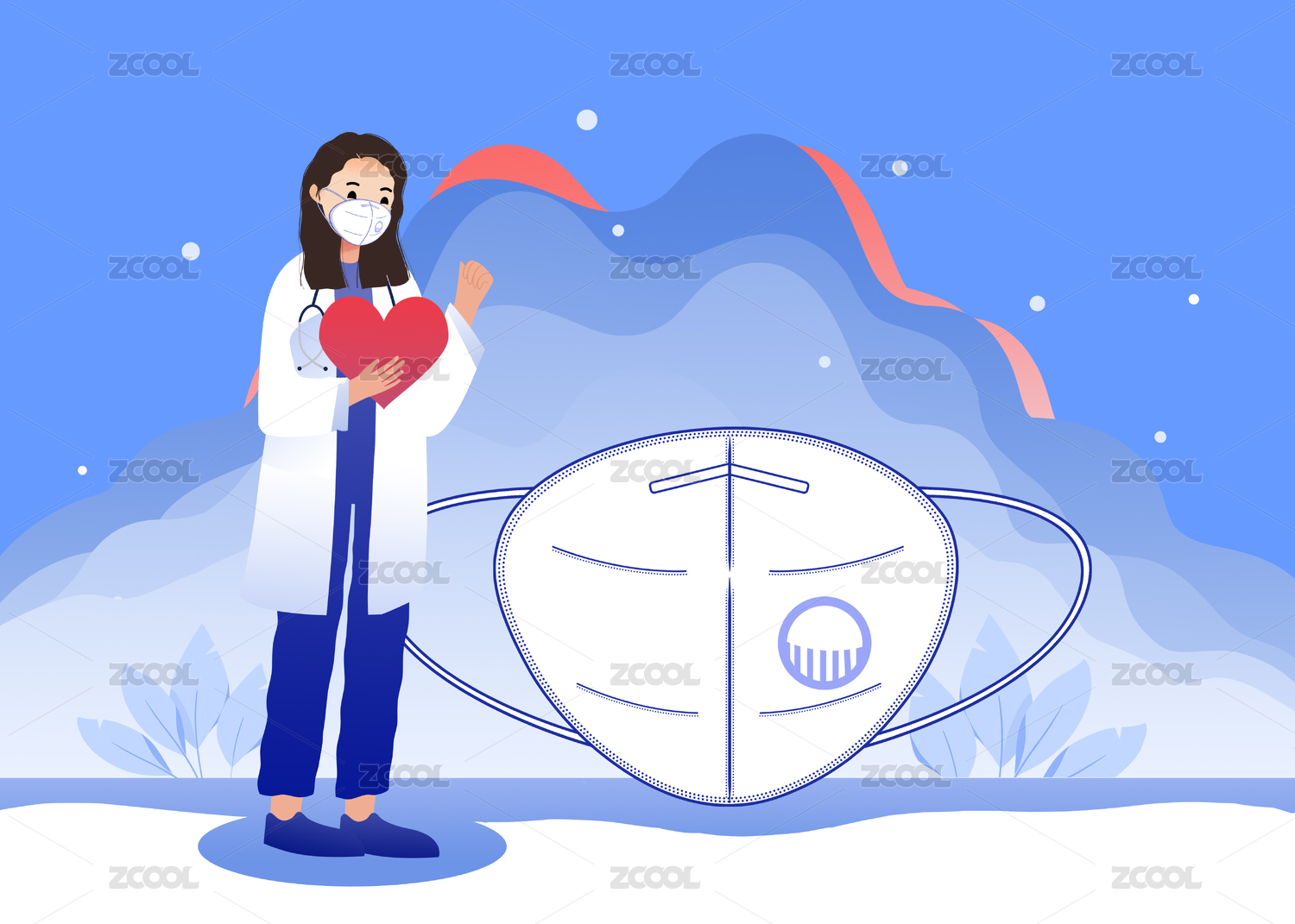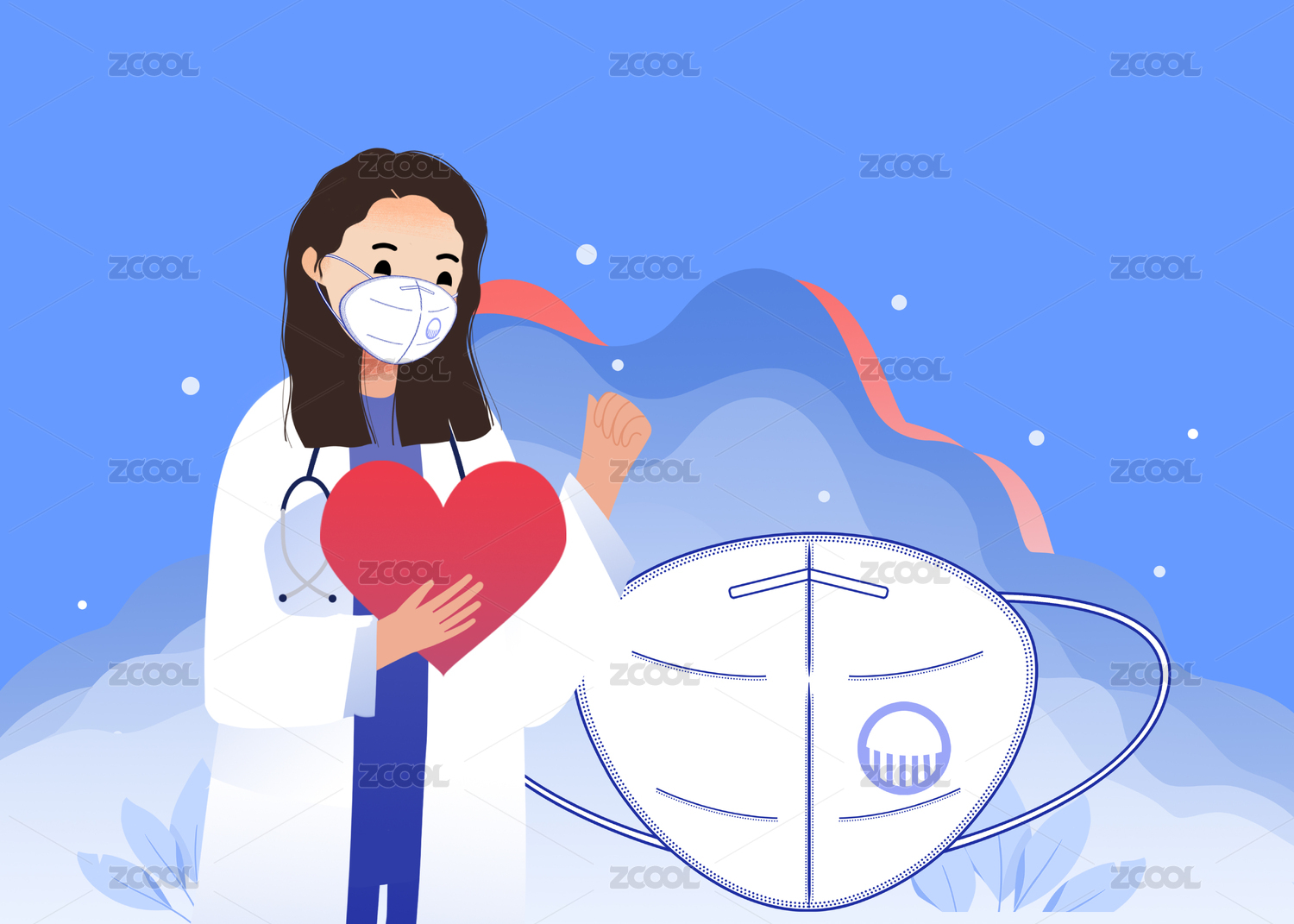 戴口罩医生比心对抗肺炎插画