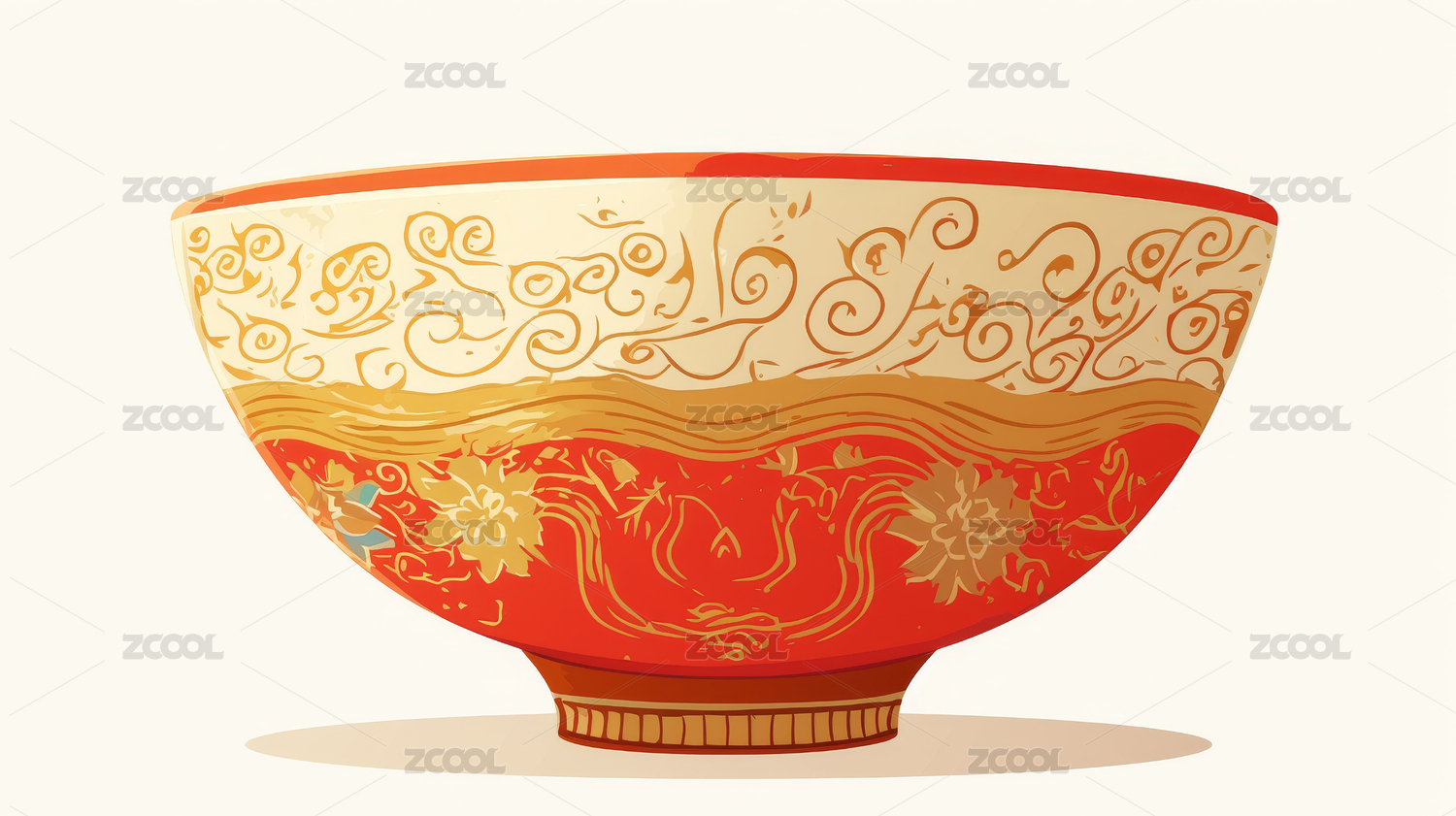 红金色祥云纹碗