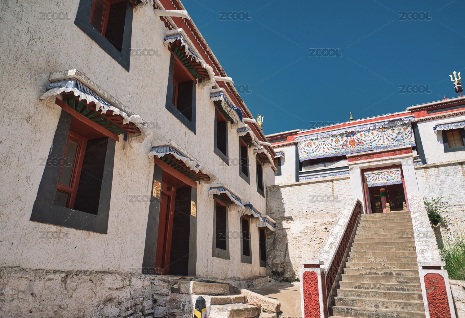 天空下青海省湟中塔尔寺内的古老宗教建筑