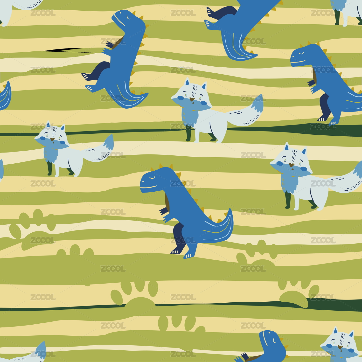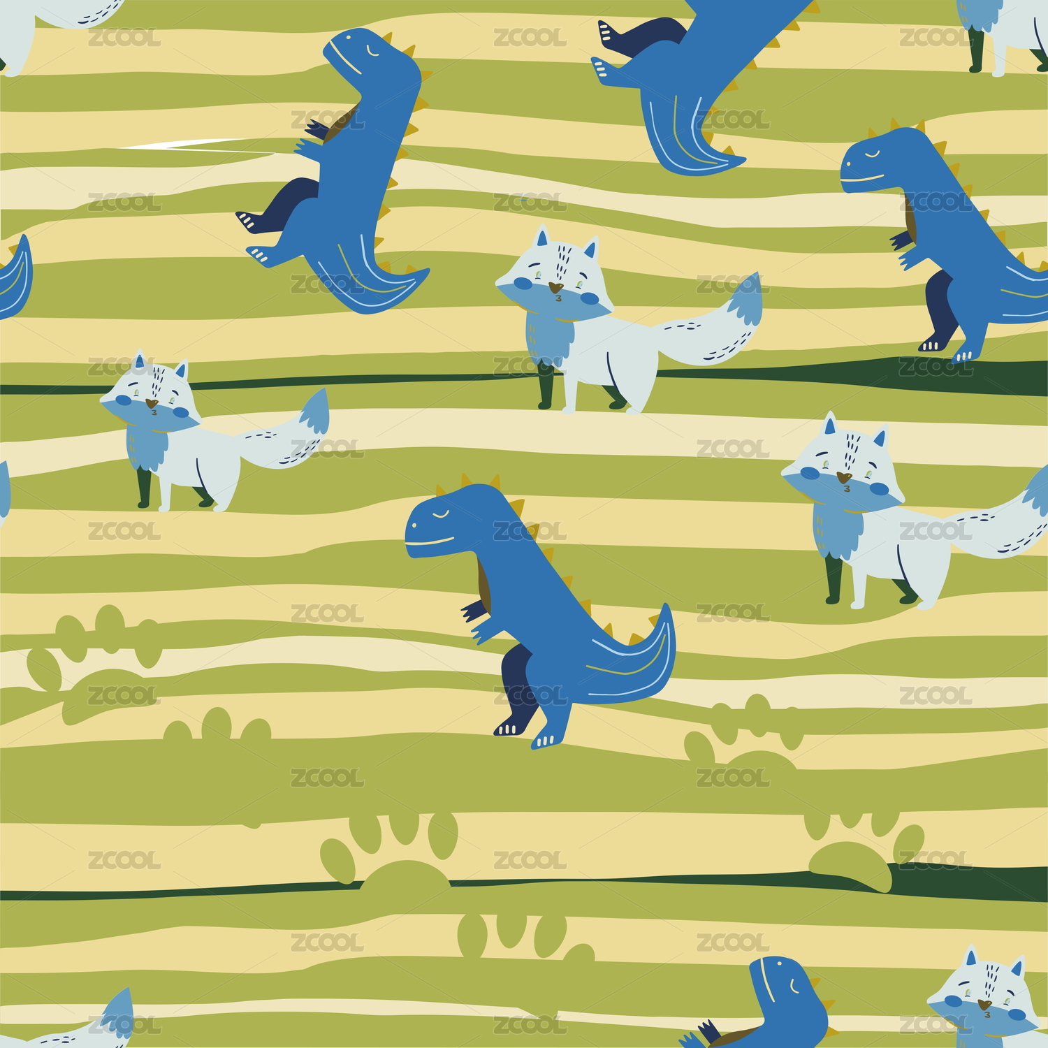 恐龙,卡通,可爱,火山,长颈恐龙,插画