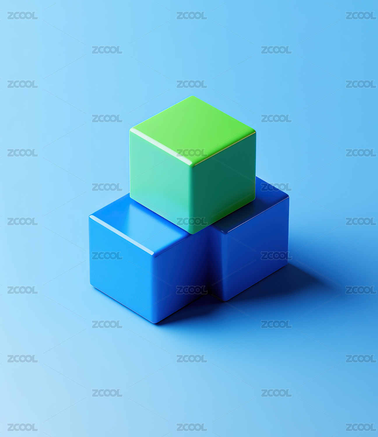 蓝色背景下的几何立方体组合