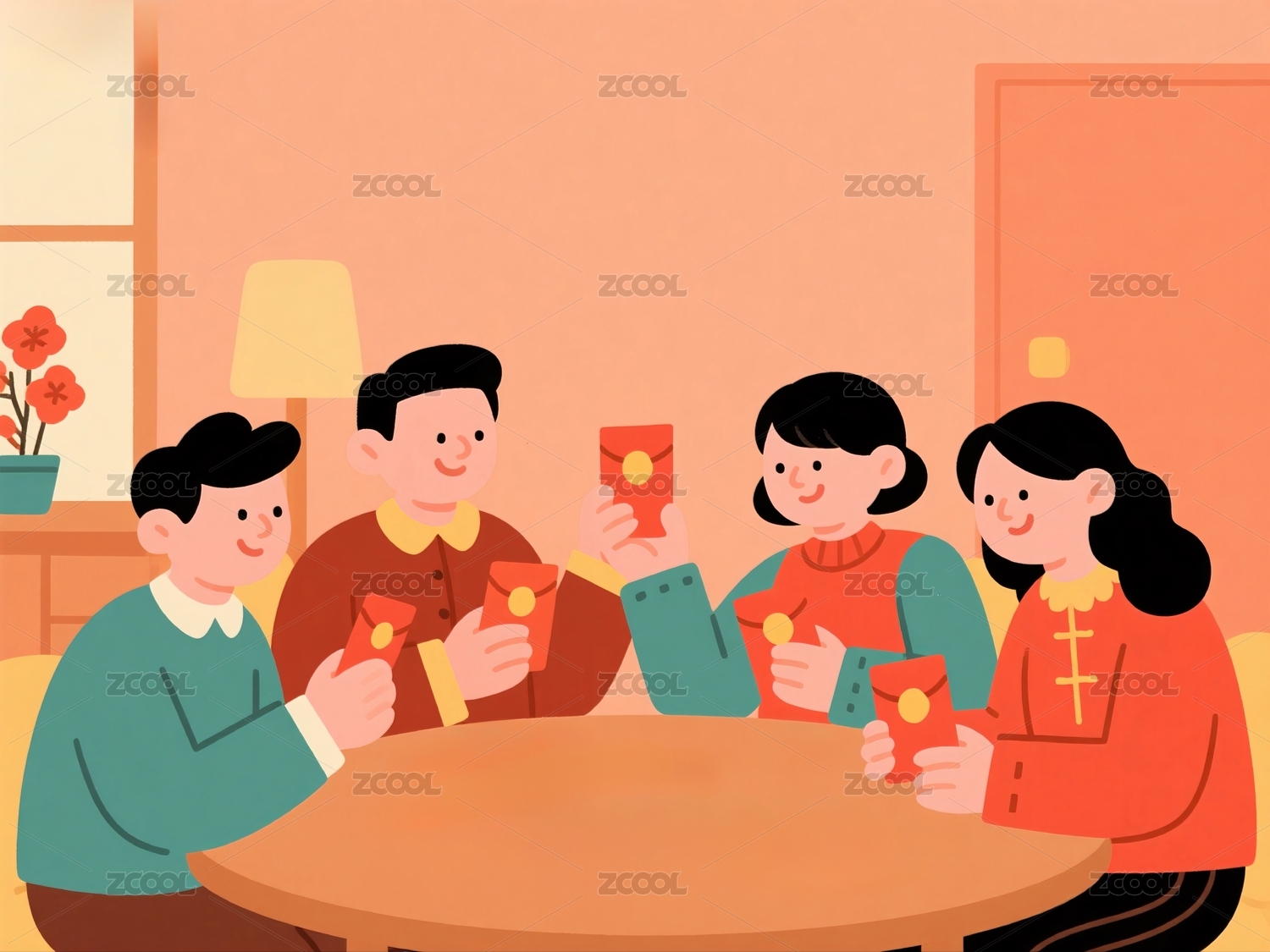 红色,红包,庆典,节日,钱,新年,矢量,贺卡,快乐,设计