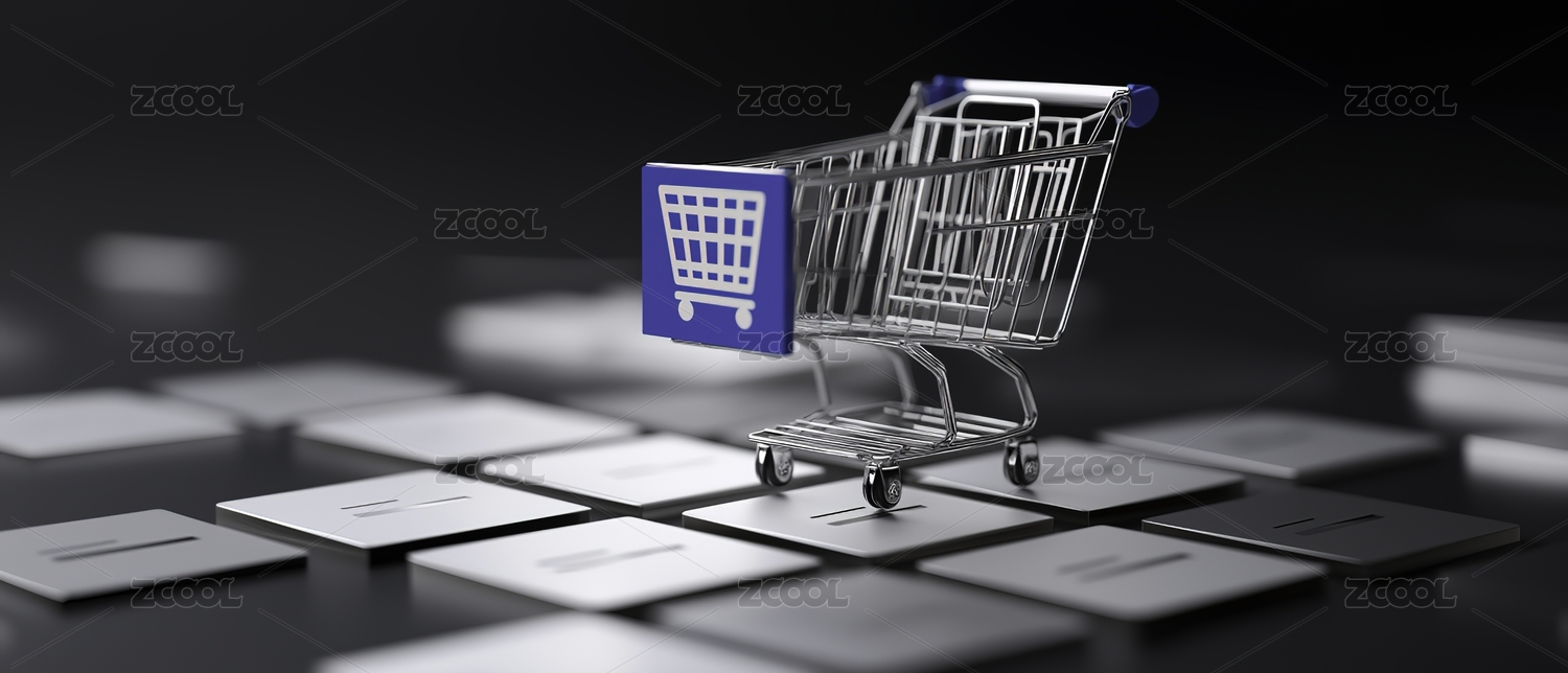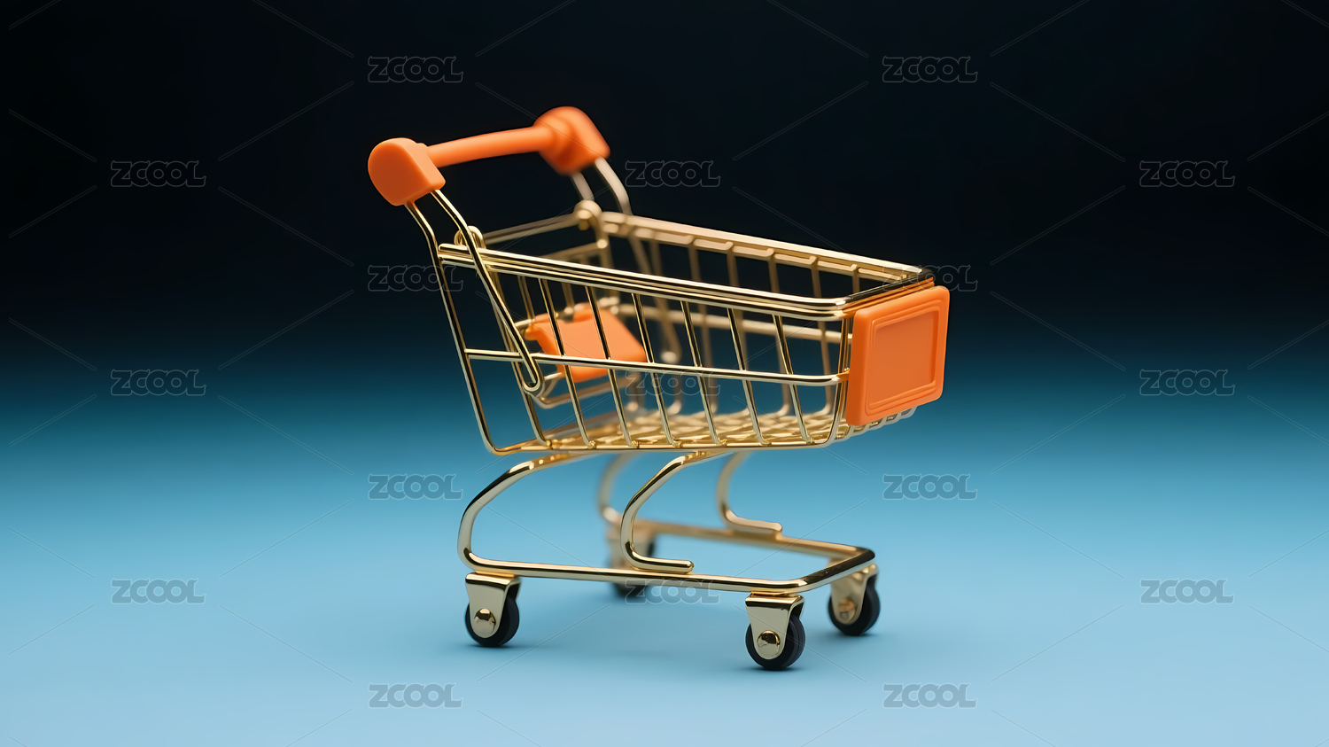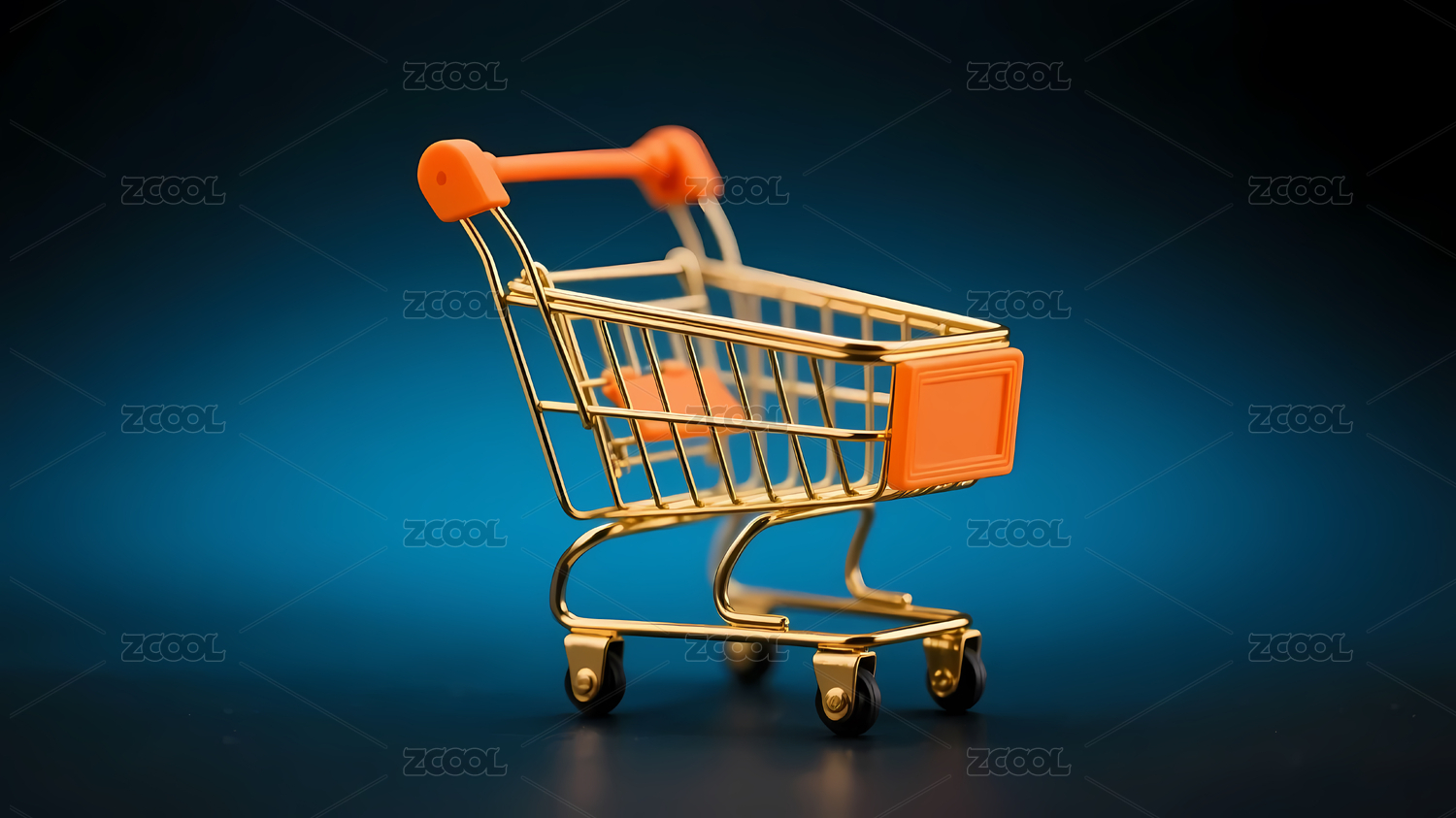 黑色背景, 简约,金色, 3D渲染, 精致, 光泽, 金属, 反光, 购物车, 购物