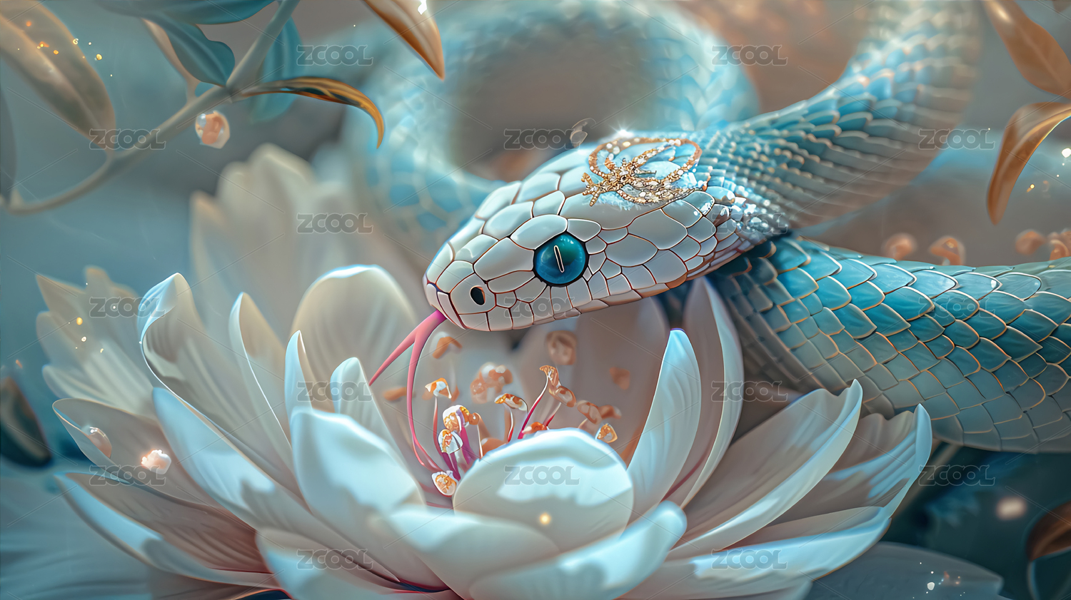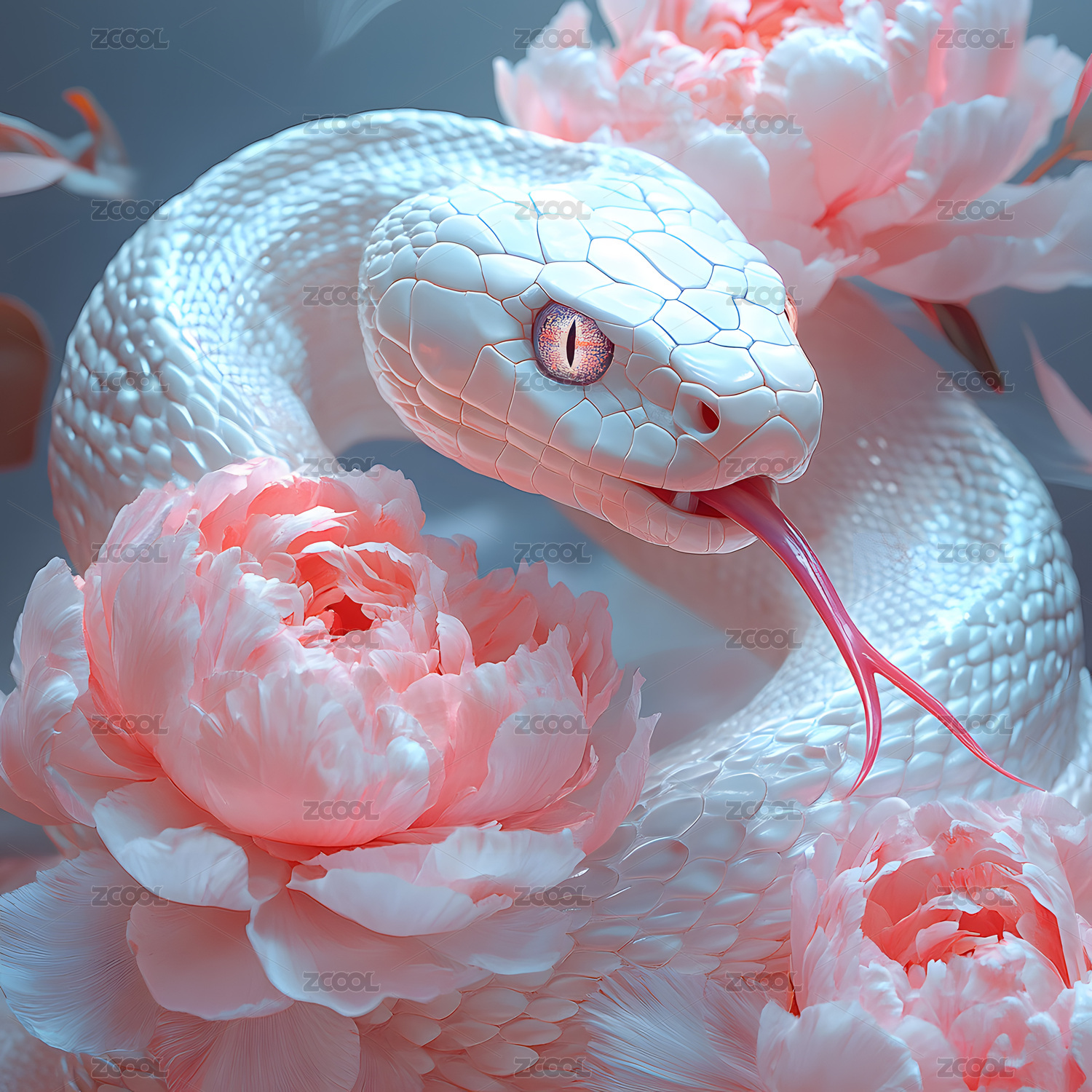 梦幻蓝蛇与粉牡丹