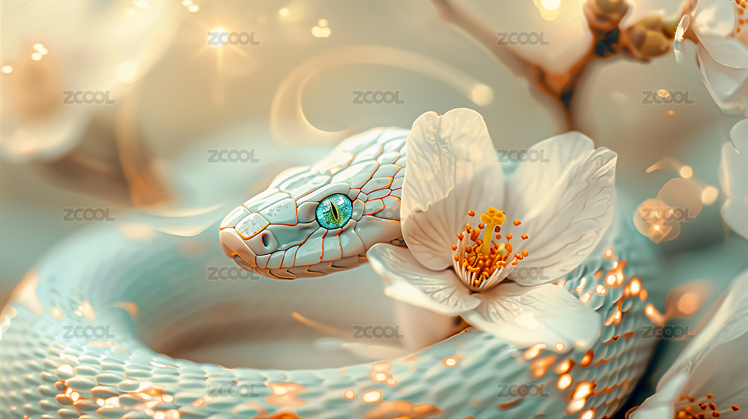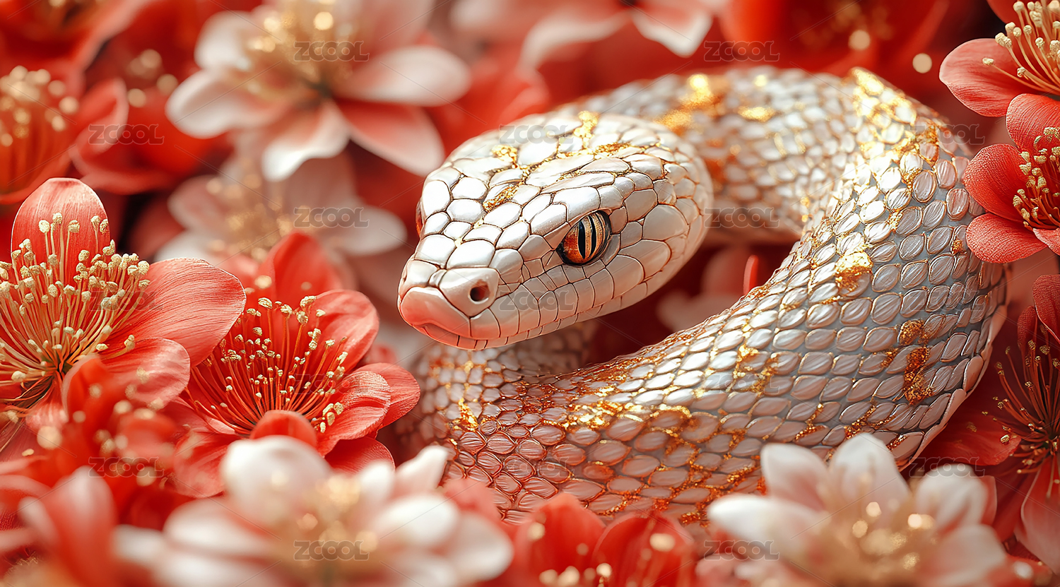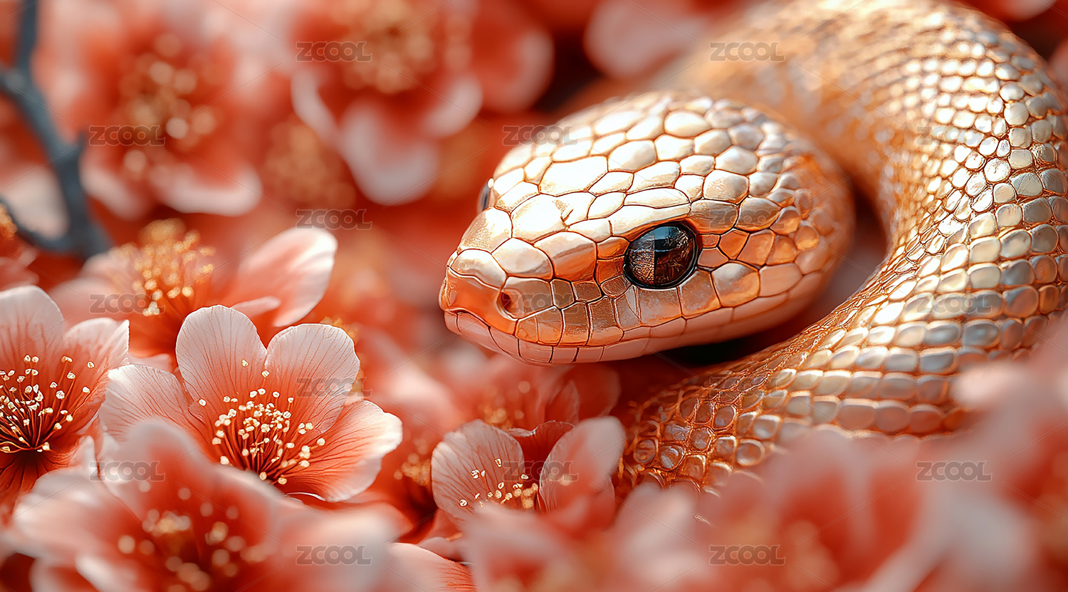 2025年贺年蛇与花的和谐美背景