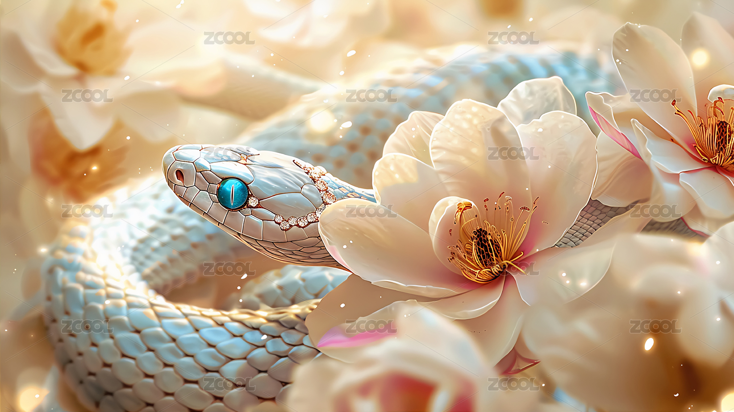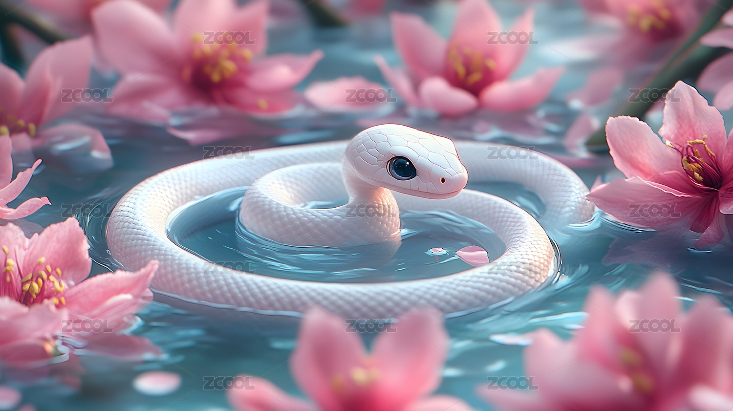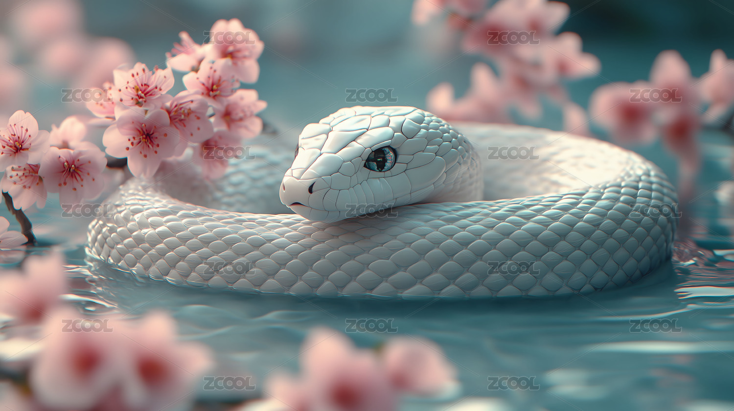 粉色樱花中的白蛇