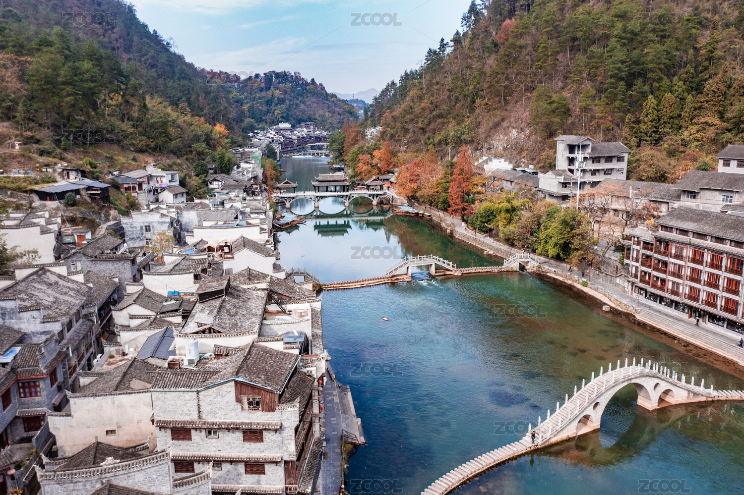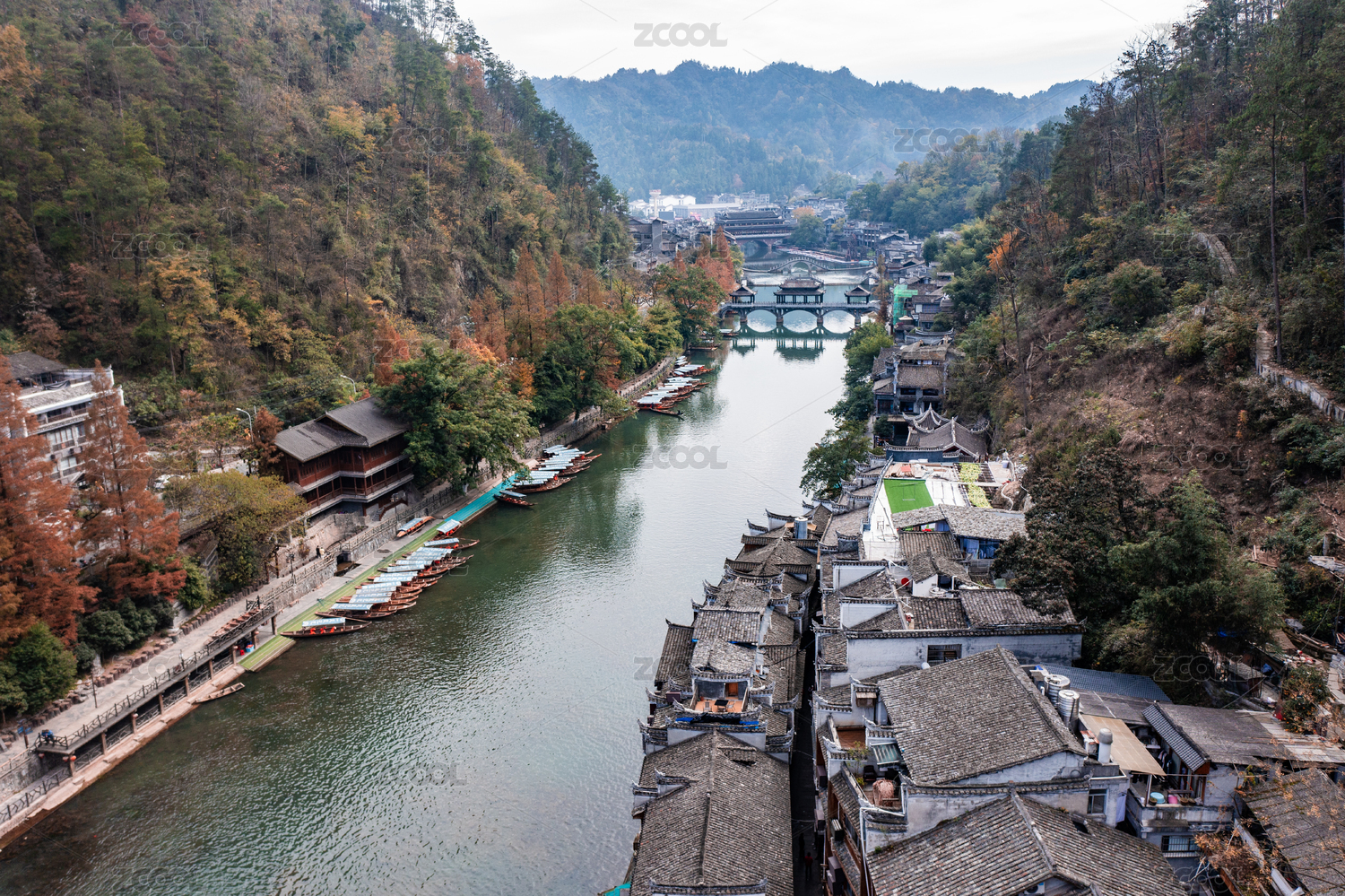 凤凰古城,秋季,秋景,凤凰,航拍,云雾,湖南,湘西,旅游,小镇