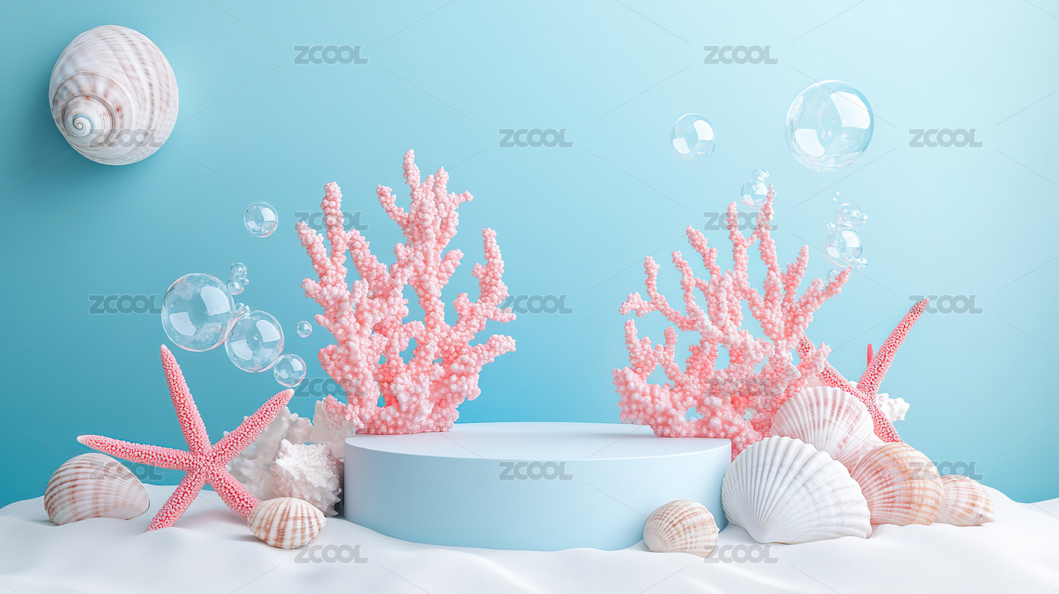 海底世界小清新圆形电商产品展台3D场景