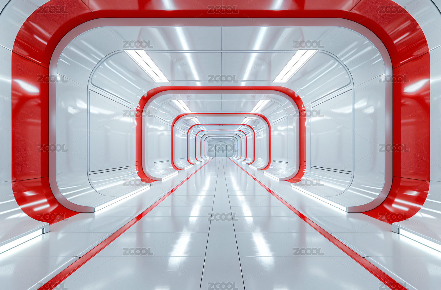 红色灯光的未来隧道