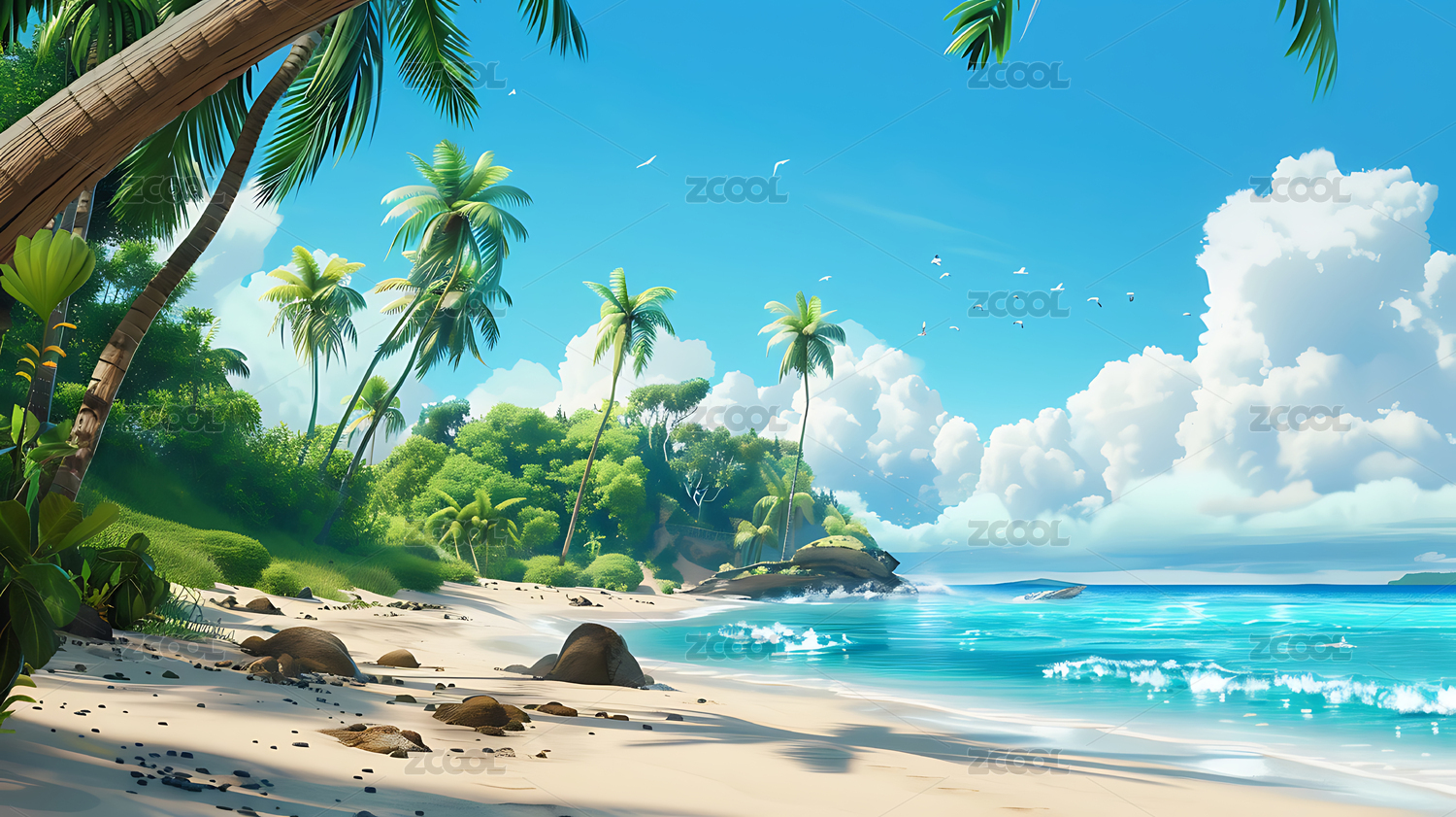 清新,夏天,风景,旅行,假日,海洋,度假,椰子树,海滩,小暑