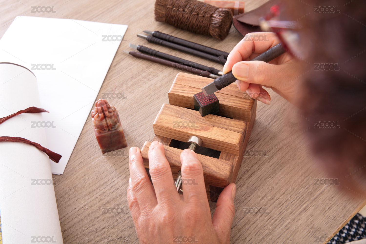 刻章,篆刻,印章,制作,刀刻,室内,刻台,桌子,图章,艺术家