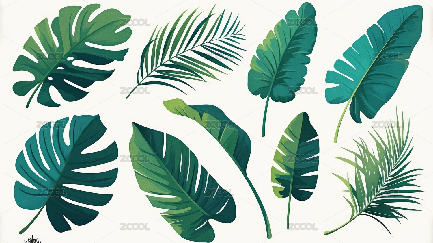 热带植物叶子绿叶插画
