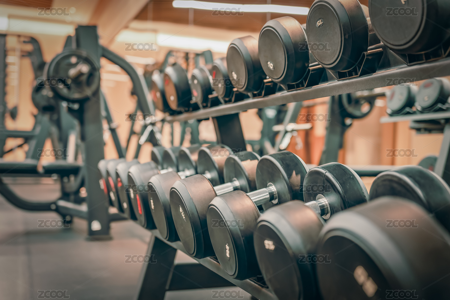 健身房室内的摆放的哑铃
