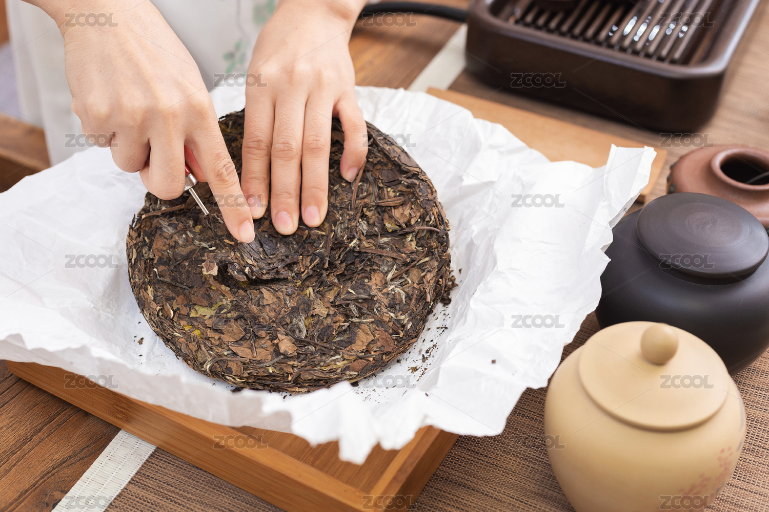 女士室内品茶,茶饼