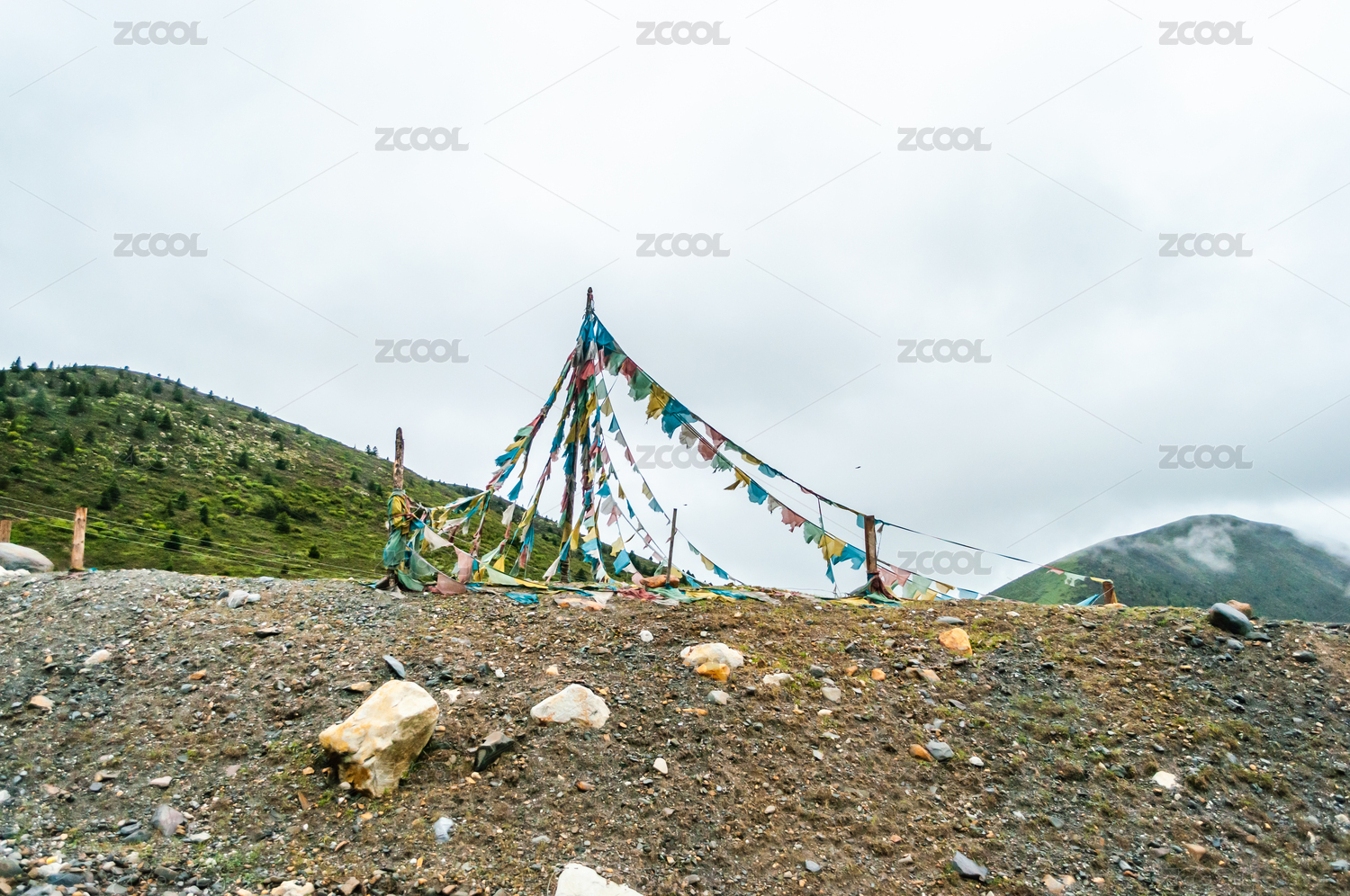中国西藏亚东高原草原无人山谷蓝天云海风光