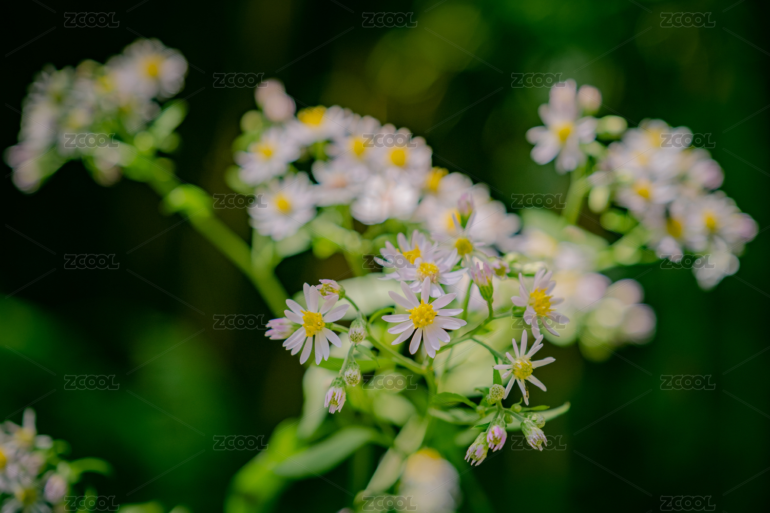 一朵白色小碎花、苦菜花,绿色虚化背景