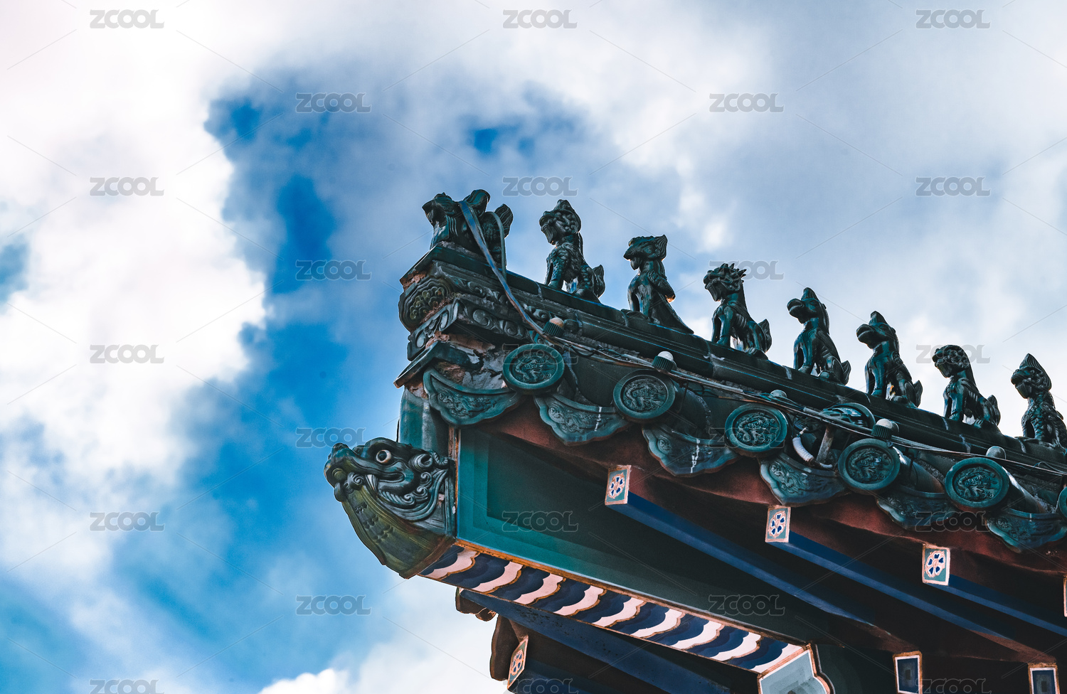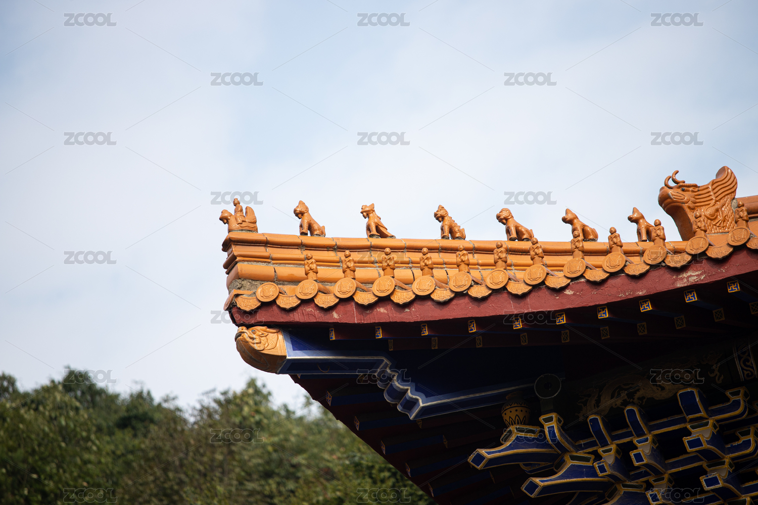 寺庙挑檐屋顶上的神兽