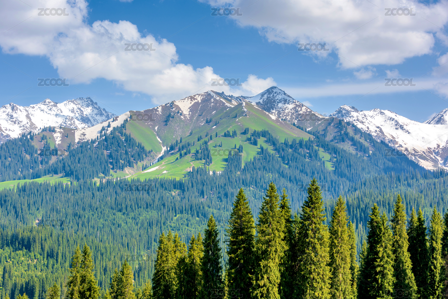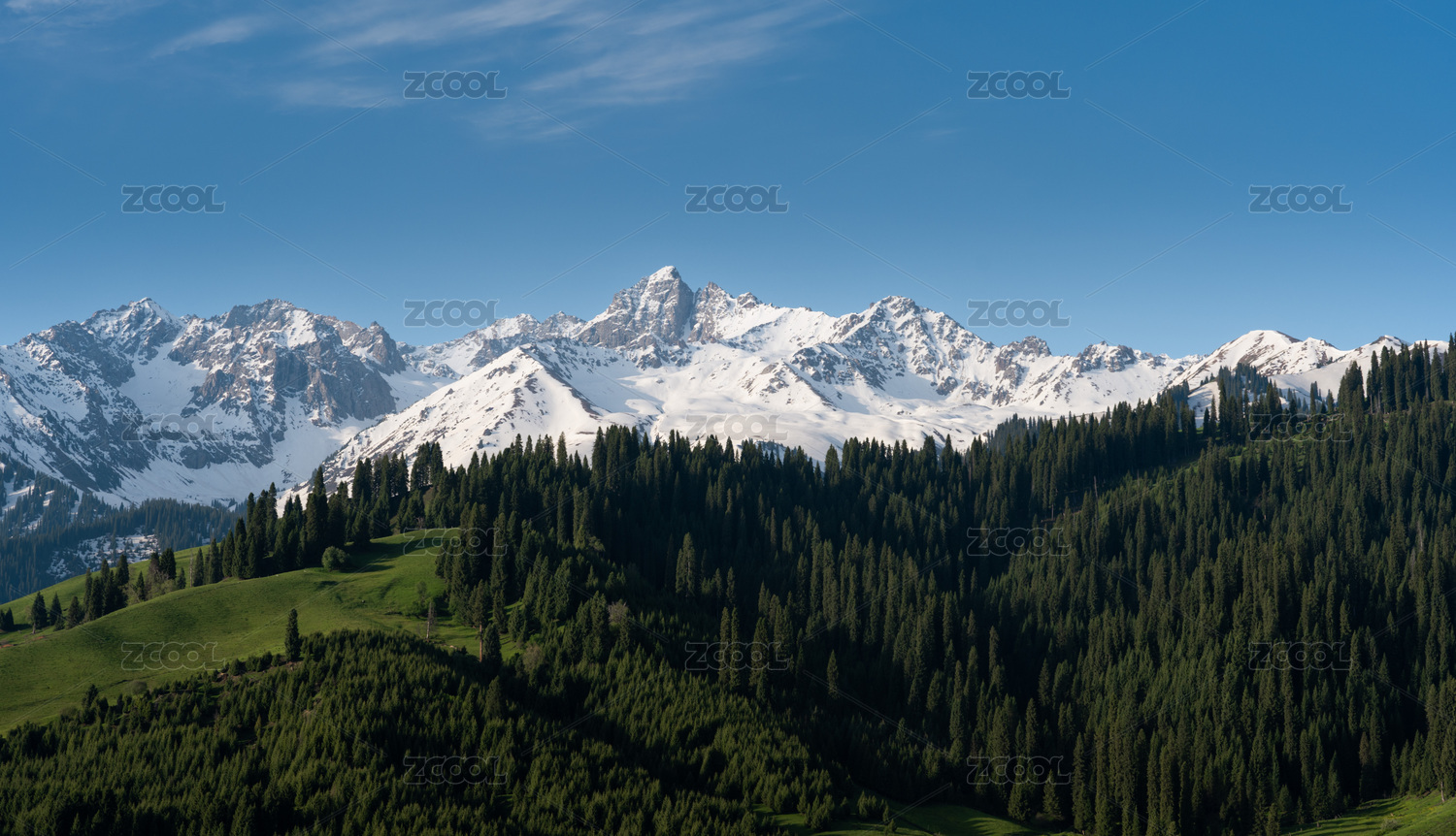 中国新疆伊犁库尔德宁雪山森林自然风光