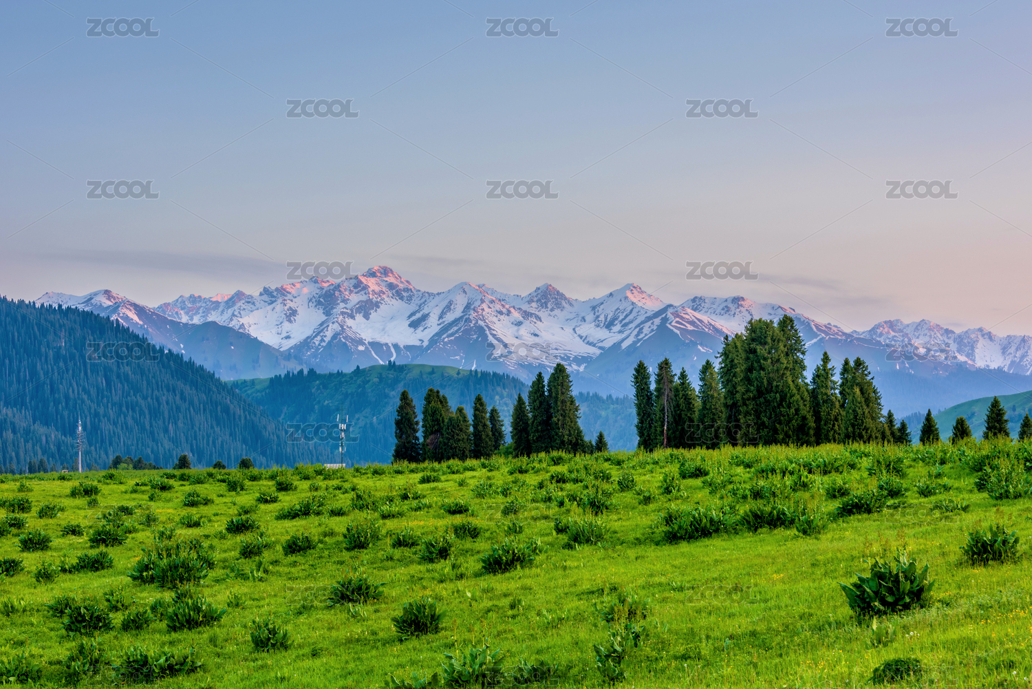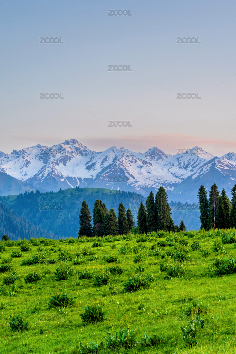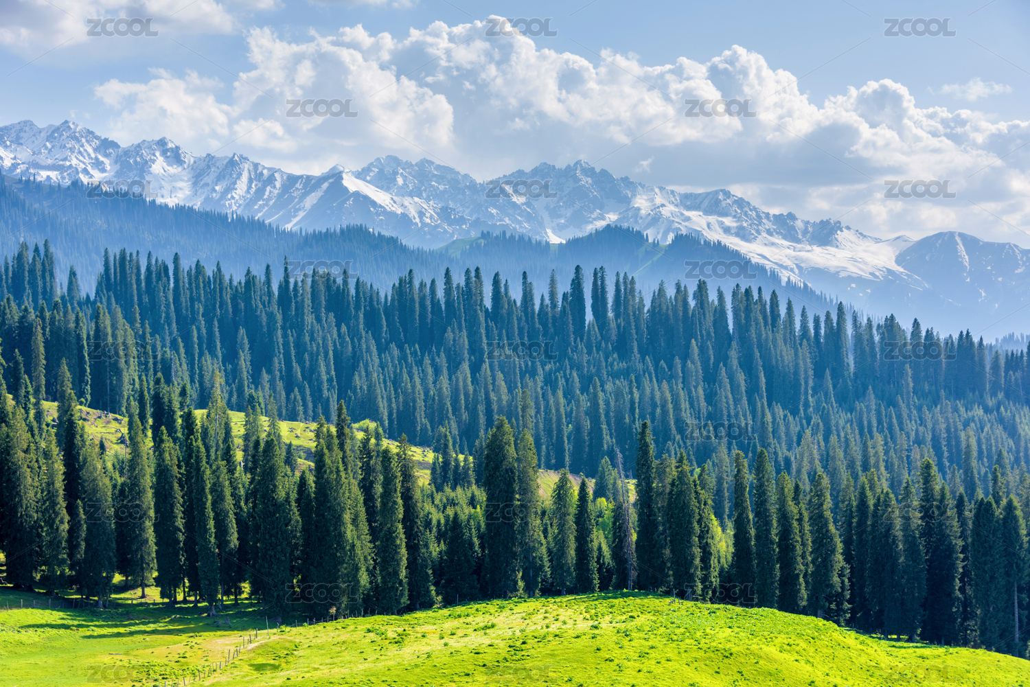 中国新疆伊犁琼库什台雪山森林草原风光