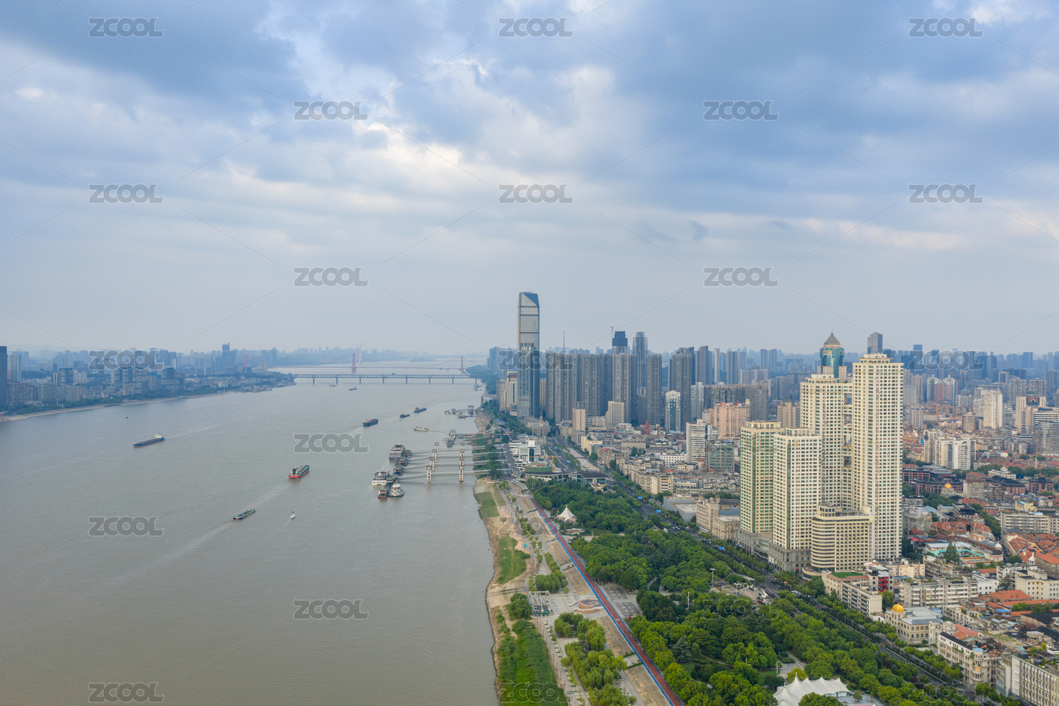夏季白天航拍湖北武汉市长江沿岸城市风光