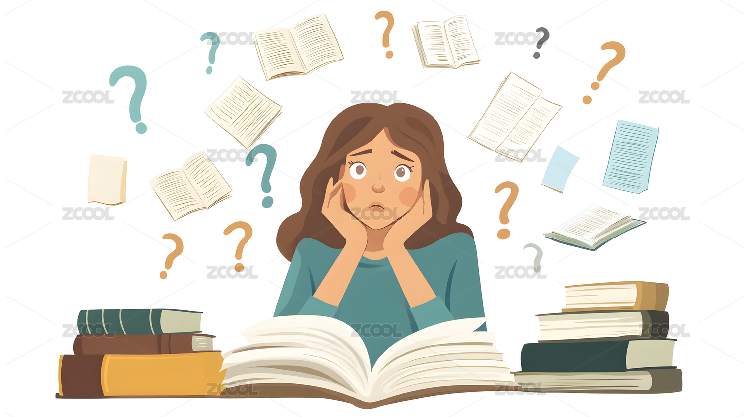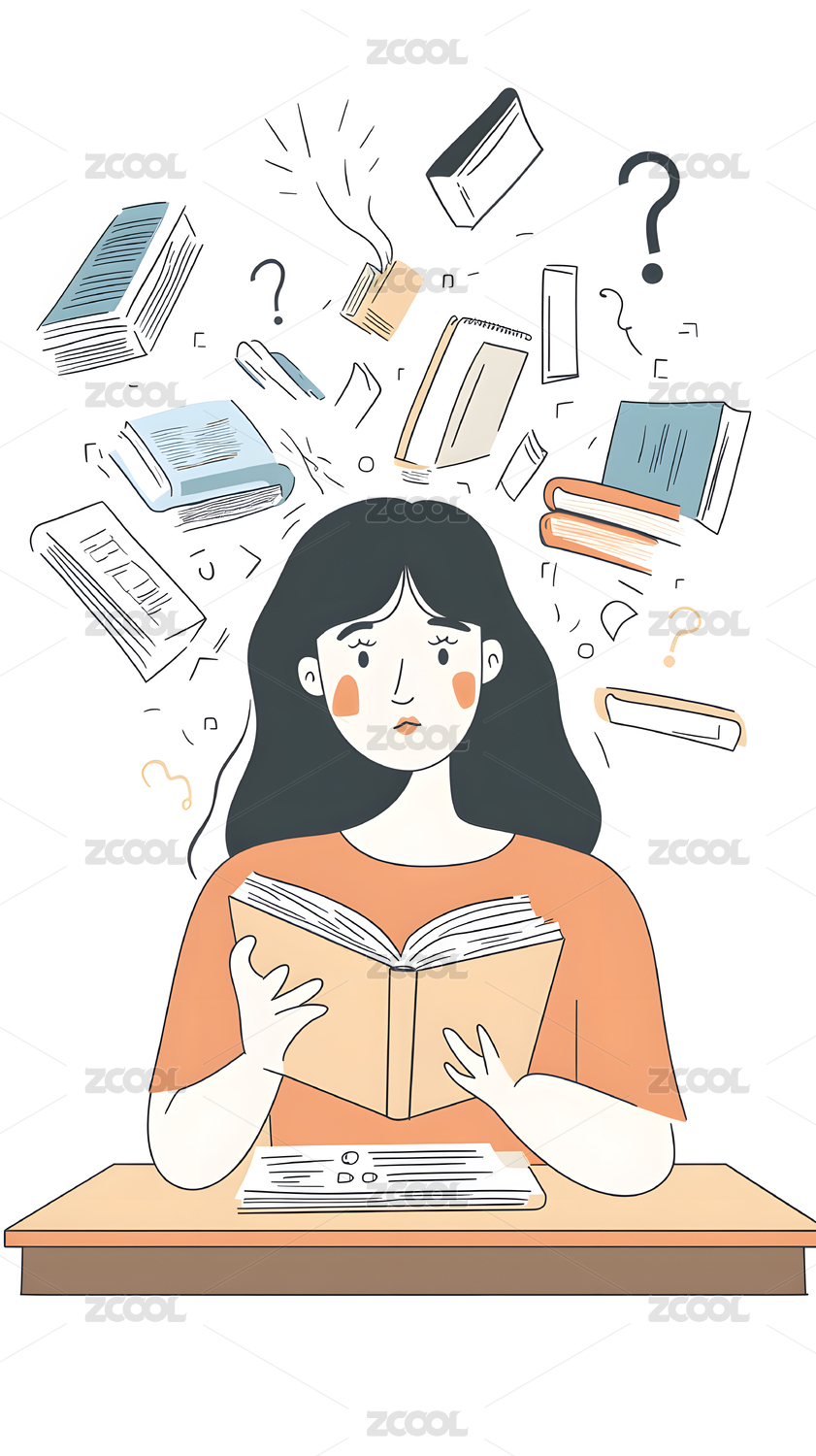 女子正在非常烦躁地阅读,一只手抚摸她的额