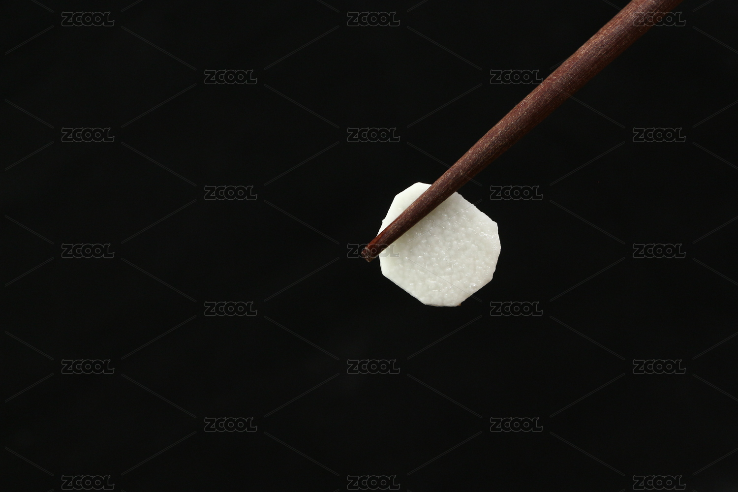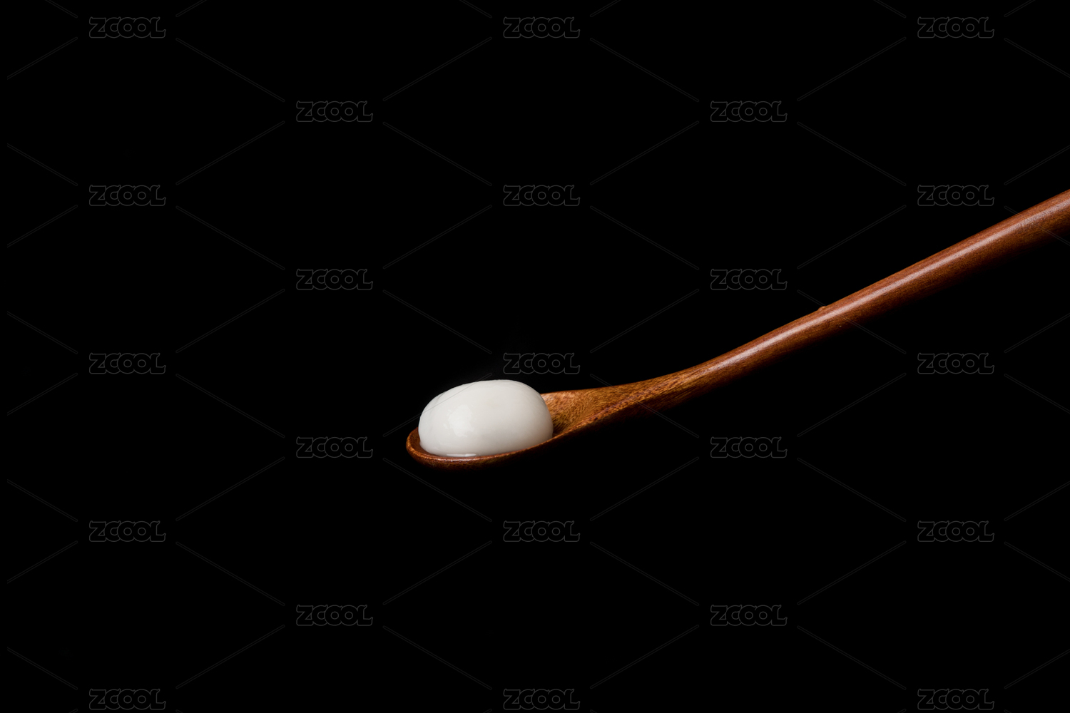 黑色背景布上木勺里一颗汤圆特写