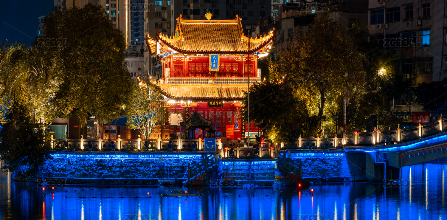 灯光秀,温州,瑞安,塘河,建筑,夜景,寺庙,文昌阁,拱瑞